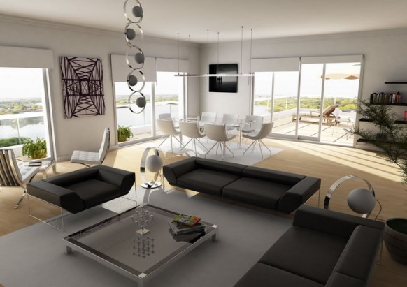 La vida moderna puede describirse como minimalista, de líneas limpias, artística e intelectual. Las pocas piezas que se encuentran en estas casas suelen ser el resultado de un arte y un diseño superiores. Casi siempre hay un punto focal elegante y los muebles son lisos y brillantes y no tan adecuados para los niños. Los métodos y materiales suelen mezclarse y contrastarse texturalmente para añadir interés y compensar la falta de color y desorden en un espacio. Los salones que se muestran a continuación son ejemplos de espacios modernos interesantes diseñados por artistas virtuales creativos de este tipo. Y HD ha escogido a mano algunos grandes espacios para que usted pueda ver por sí mismo los elementos de fuego seguro de una sala de estar con éxito.