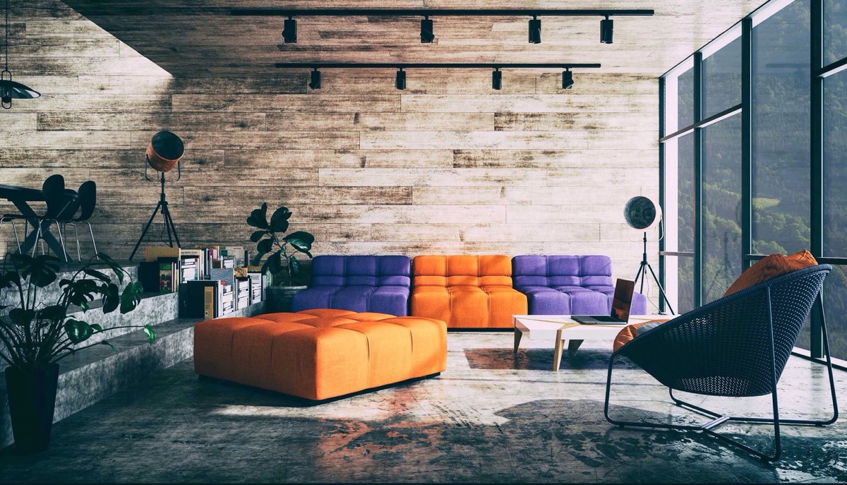 Sobre un fondo de madera y hormigón, puedes ir tan brillante como te atrevas.