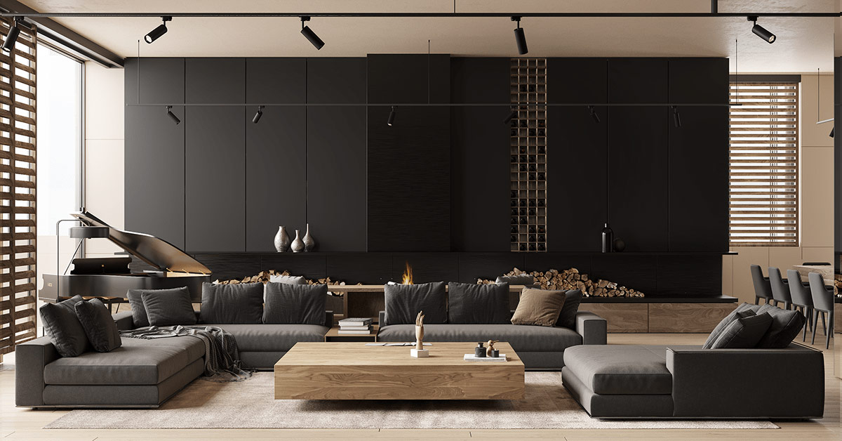 La decoración oscura del salón es una elección atrevida. Causa un impacto inmediato y emana una personalidad segura de sí misma. Las siluetas de los muebles oscuros emergen sutilmente de las sombras, mientras que los acentos más coloridos parecen adquirir un efecto eléctrico. La iluminación del hogar adquiere un nuevo nivel de importancia, ofreciendo no sólo iluminación general, sino también reflejos precisos, focos elaborados y calidez visual. Este enfoque saturado crea un acogedor capullo que parece un escondite del mundo exterior. Un lugar en el que retirarse, relajarse y recuperarse. En esta colección de 40 salones modernos inspiradores, exploraremos una variedad de paletas decorativas oscuras con piezas brillantes, puntos focales texturizados y un diseño exquisito.
