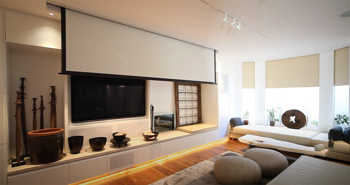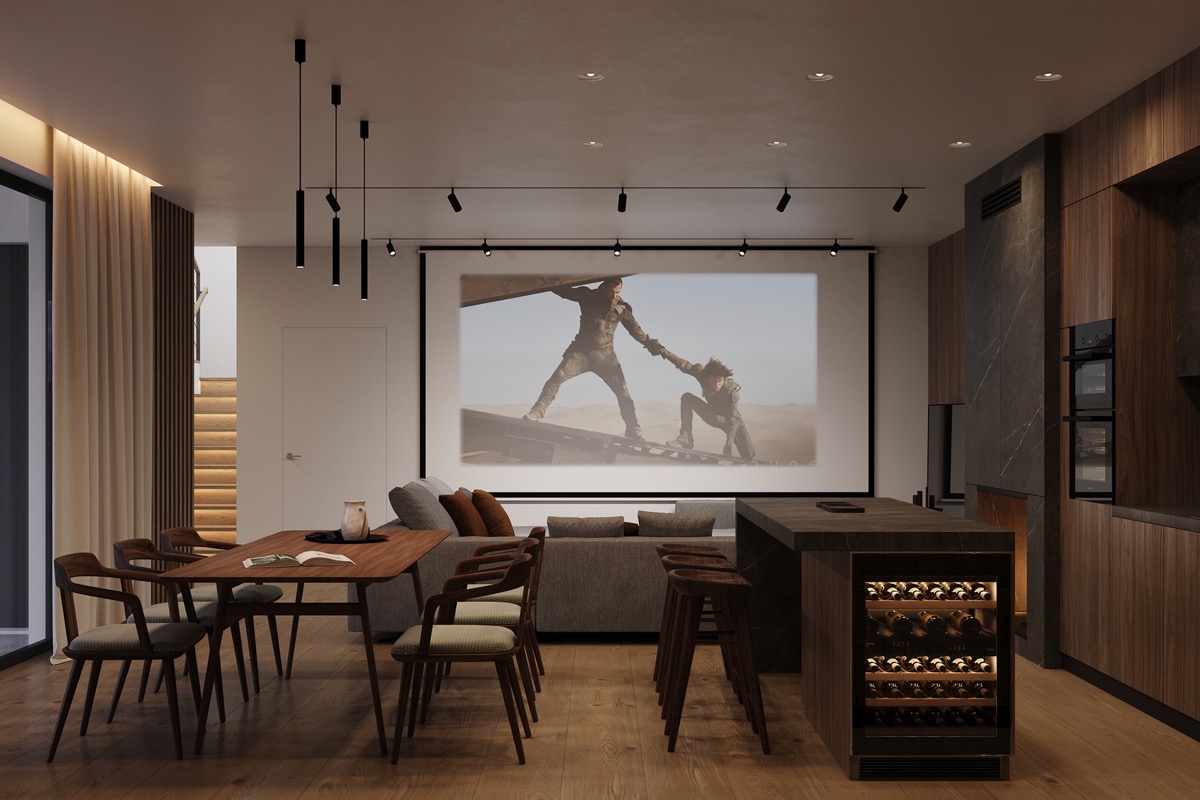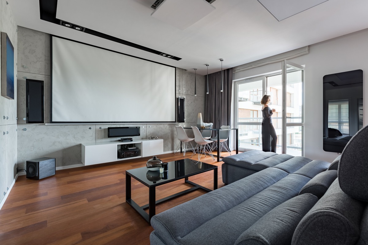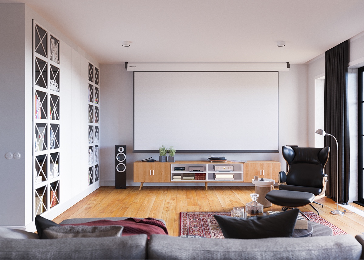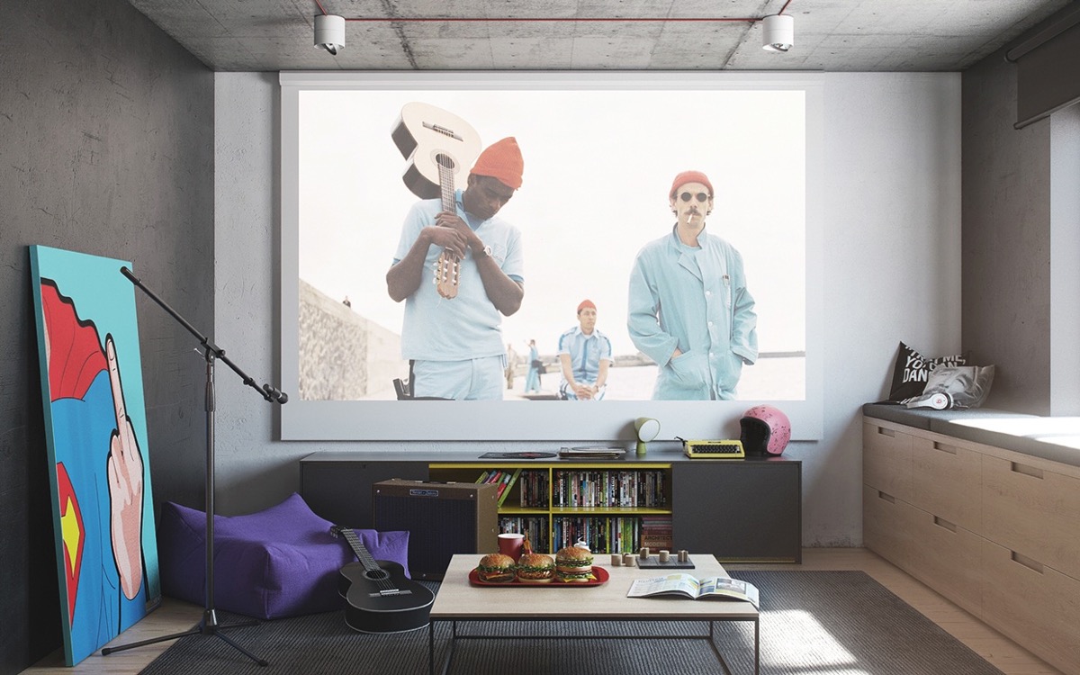 Hubo un tiempo en que los proyectores de cine se limitaban a salas oscuras de cine en casa, pero ya no. Hoy en día, hay proyectores que producen imágenes lo bastante brillantes para una sala de estar abierta sin que la luz ambiental destruya la imagen. Cambiando completamente un voluminoso televisor negro por una elegante pantalla de proyector se consigue una estetica de la habitacion mas descansada y elegante. Colocar una pantalla de proyector delante del televisor para ver una pelicula o el partido puede duplicar la zona de visionado. Es realmente una obviedad. Esta colección de ideas para el cine en el salón muestra exactamente cómo se hace, en modernos esquemas decorativos que superan con estilo a la sala de cine.