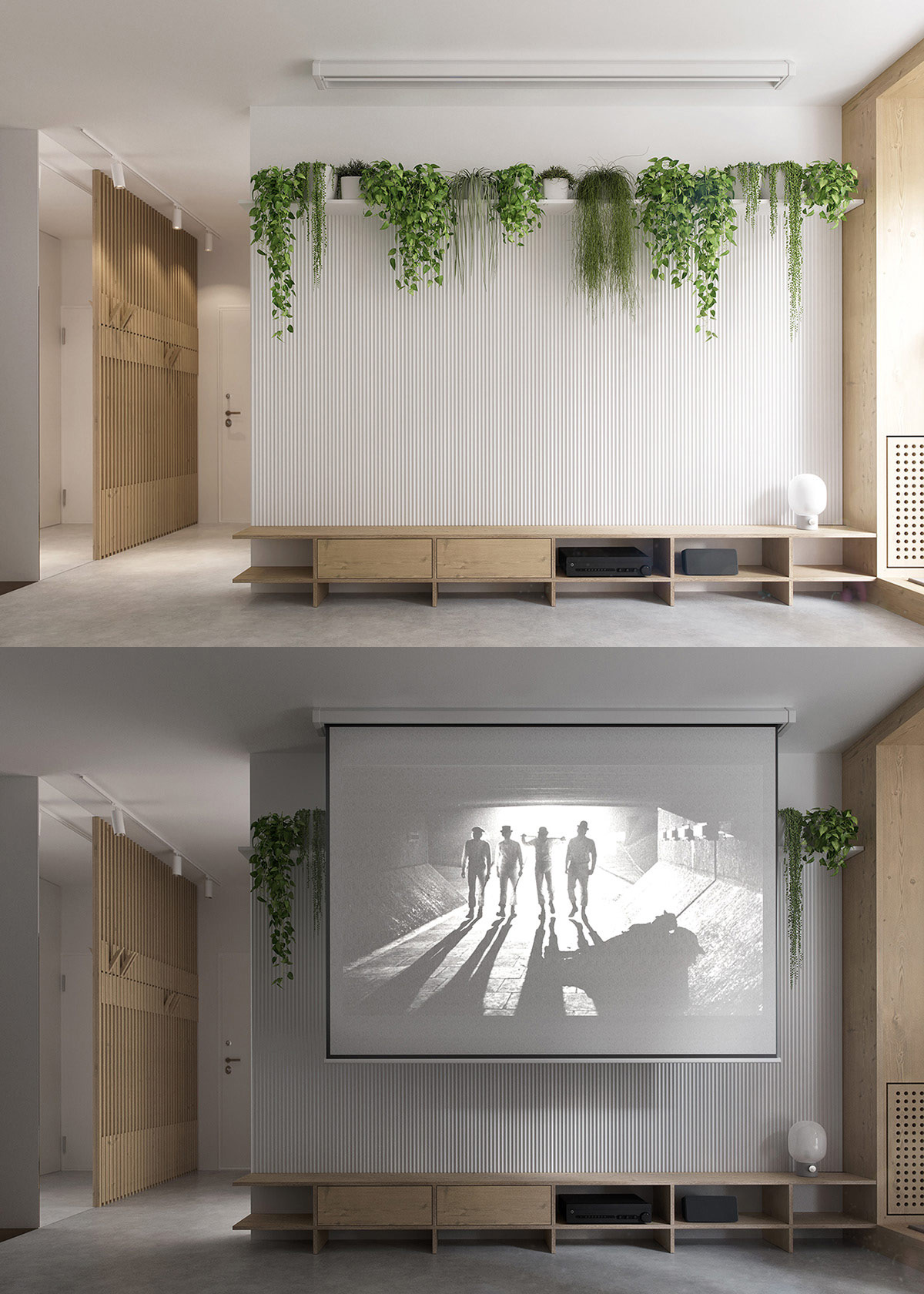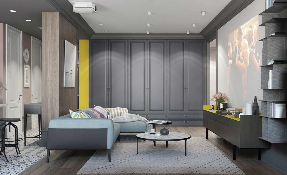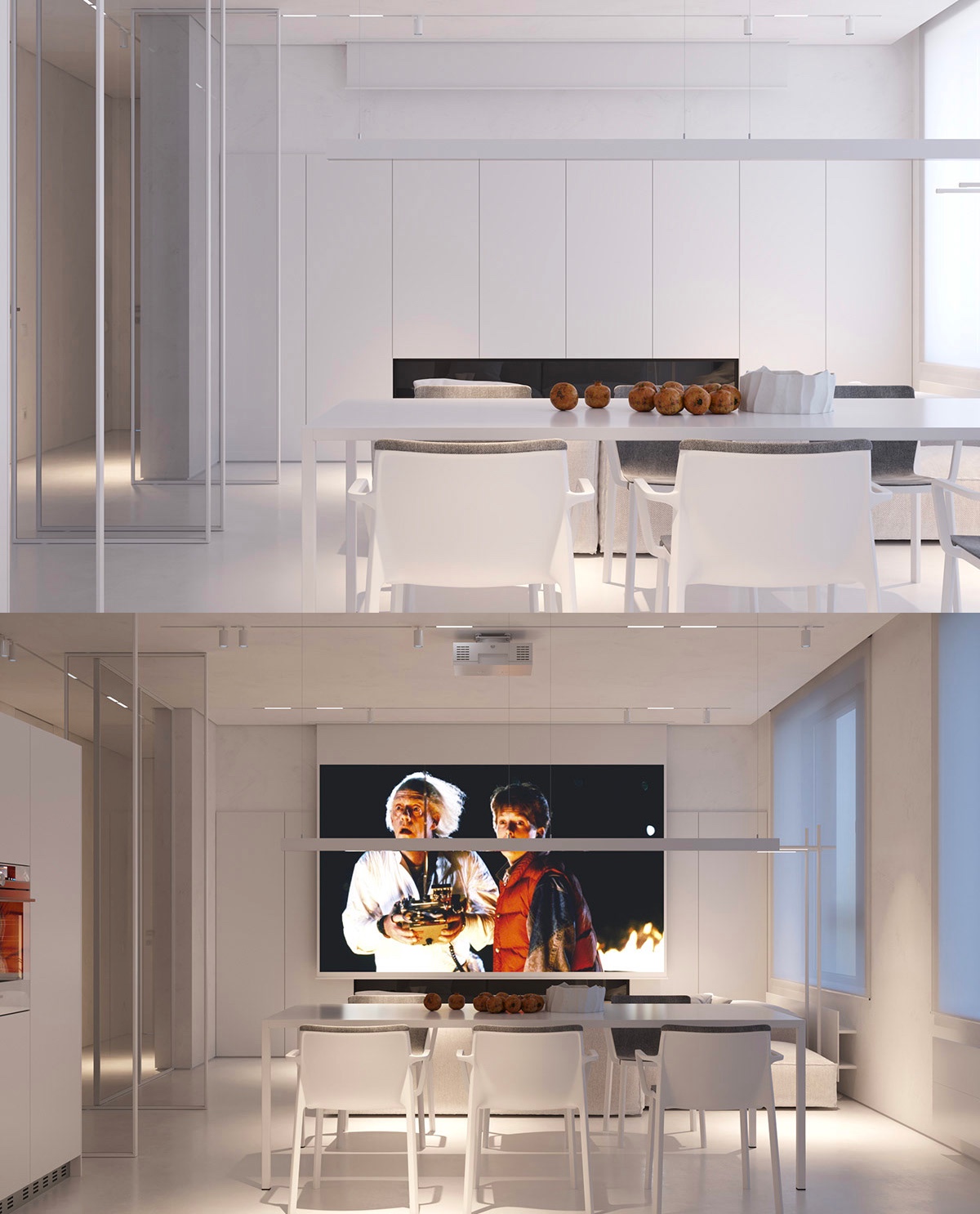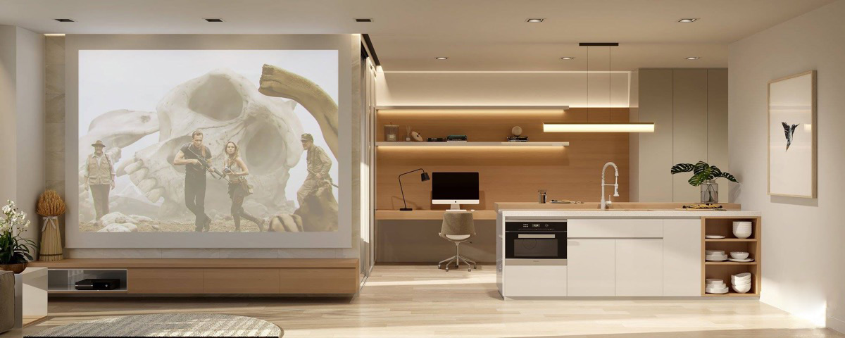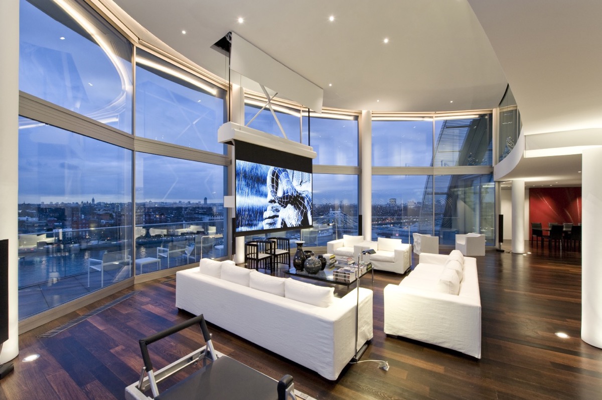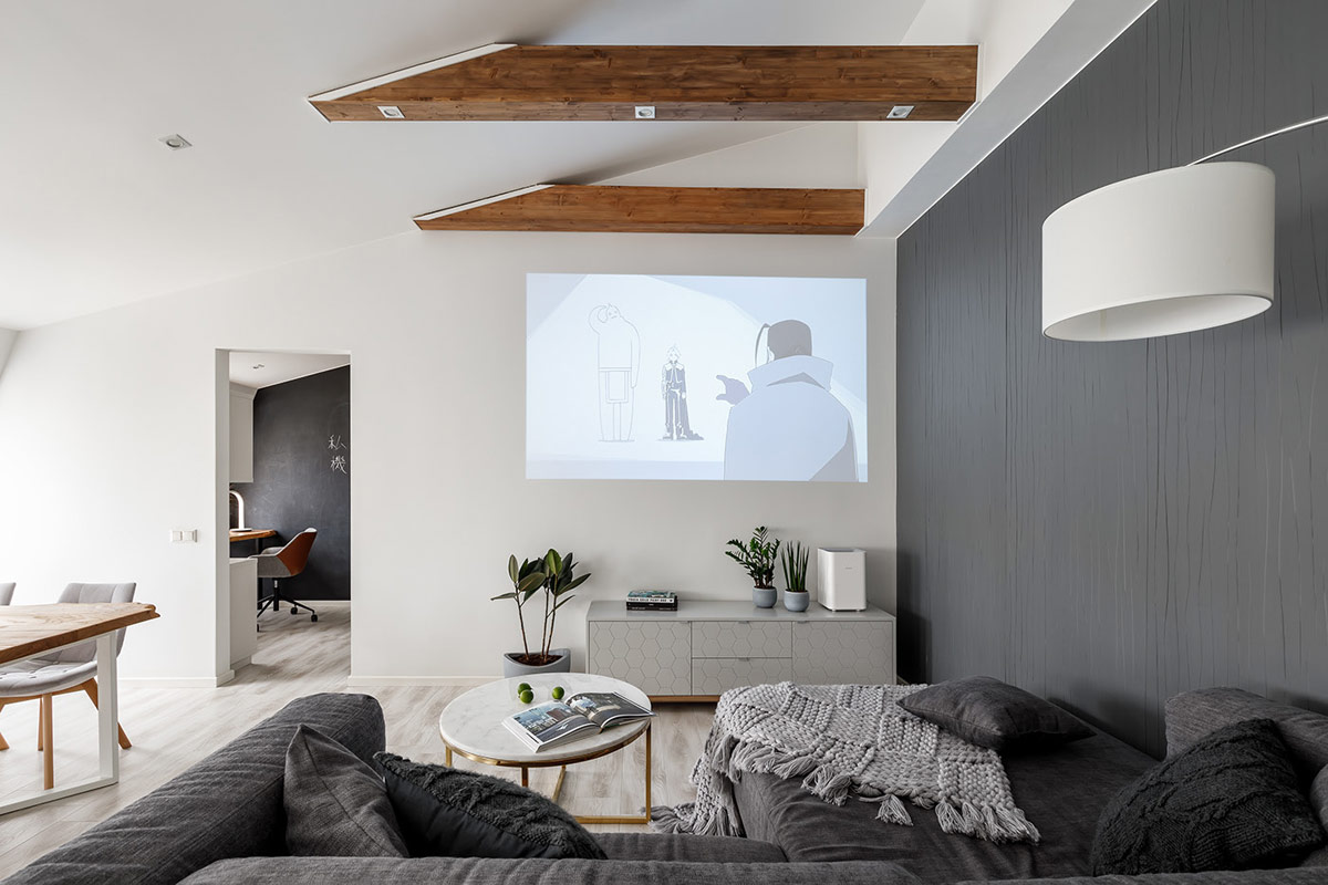 Hubo un tiempo en que los proyectores de cine se limitaban a salas oscuras de cine en casa, pero ya no. Hoy en día, hay proyectores que producen imágenes lo bastante brillantes para una sala de estar abierta sin que la luz ambiental destruya la imagen. Cambiando completamente un voluminoso televisor negro por una elegante pantalla de proyector se consigue una estetica de la habitacion mas descansada y elegante. Colocar una pantalla de proyector delante del televisor para ver una pelicula o el partido puede duplicar la zona de visionado. Es realmente una obviedad. Esta colección de ideas para el cine en el salón muestra exactamente cómo se hace, en modernos esquemas decorativos que superan con estilo a la sala de cine.