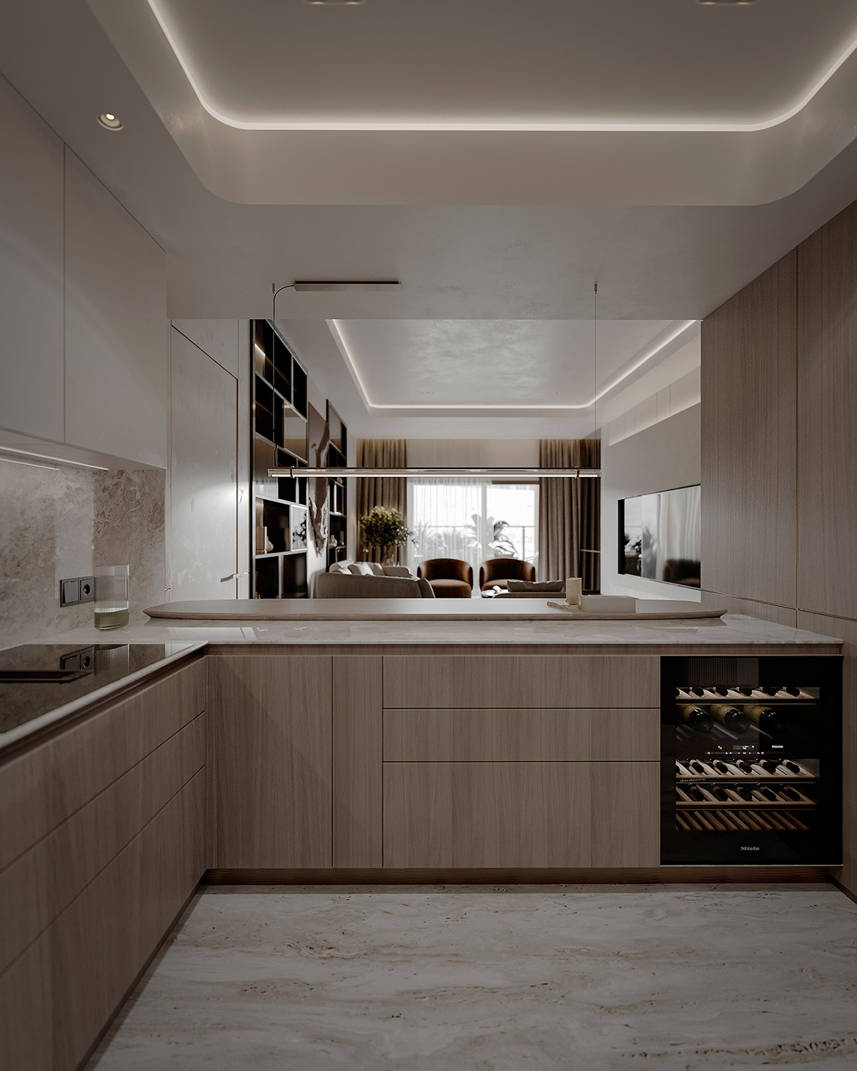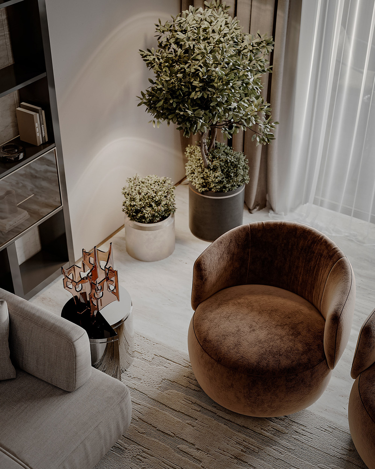 La decoración en beige irradia un aura de discreta elegancia y belleza atemporal. En el ámbito de los espacios modernos, este versátil tono se ha ganado un gran favor por su capacidad para crear un ambiente refinado y sofisticado. Gracias a la sutil calidez de una neutralidad relajante, los interiores en beige ofrecen un entorno sereno para la relajación, la contemplación y la conexión familiar. En este artículo, te invitamos a sumergirte en 3 elegantes espacios de color beige, cada uno de ellos visualizado por Julia Tkachenko. Veremos cómo los toques oscuros ayudan a afianzar el esquema de un salón beige claro, cómo la cuidada selección de muebles convierte espacios ordinarios en santuarios de alta gama y cómo las instalaciones de iluminación creativas son realmente transformadoras.