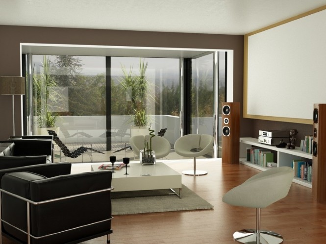 Estas distribuciones favorecen los suelos duros de baldosas o madera, que ayudan a hacer rebotar la luz por la habitación, suavizados únicamente por discretas alfombras dispersas y cortinas apagadas que dejan que las modernas líneas de los asientos de diseño cobren protagonismo. La silla Egg de Arne Jacobsen actúa aquí como silla de acento.