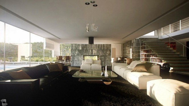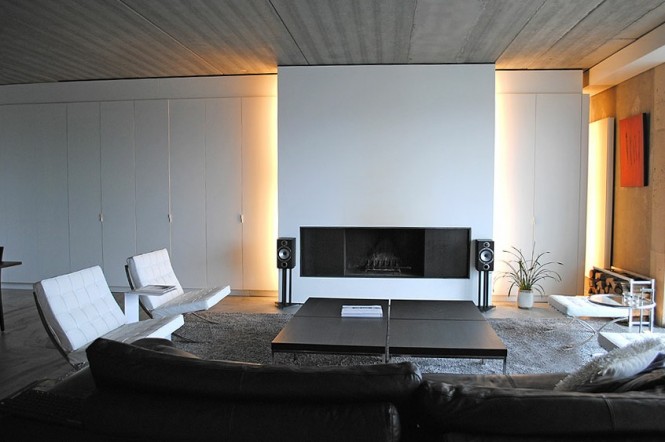 Este esquema apagado da un aspecto sofisticado, acentuado maravillosamente por los estantes a medida de la biblioteca cabidos debajo de la escalera abierta del plan.