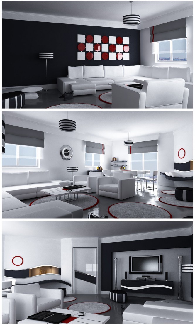 Un gran salón Art Moderne con contrastes cromáticos de gran dimensión.