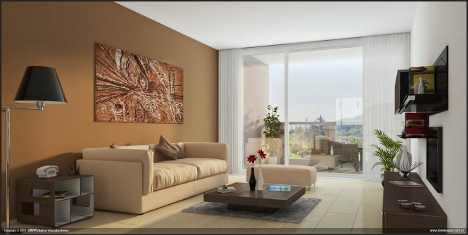Una decoración rectilínea en tonos terrosos simplifica este salón, mientras que la luz natural del sol aporta dinamismo a unos tonos que, de otro modo, serían neutros.