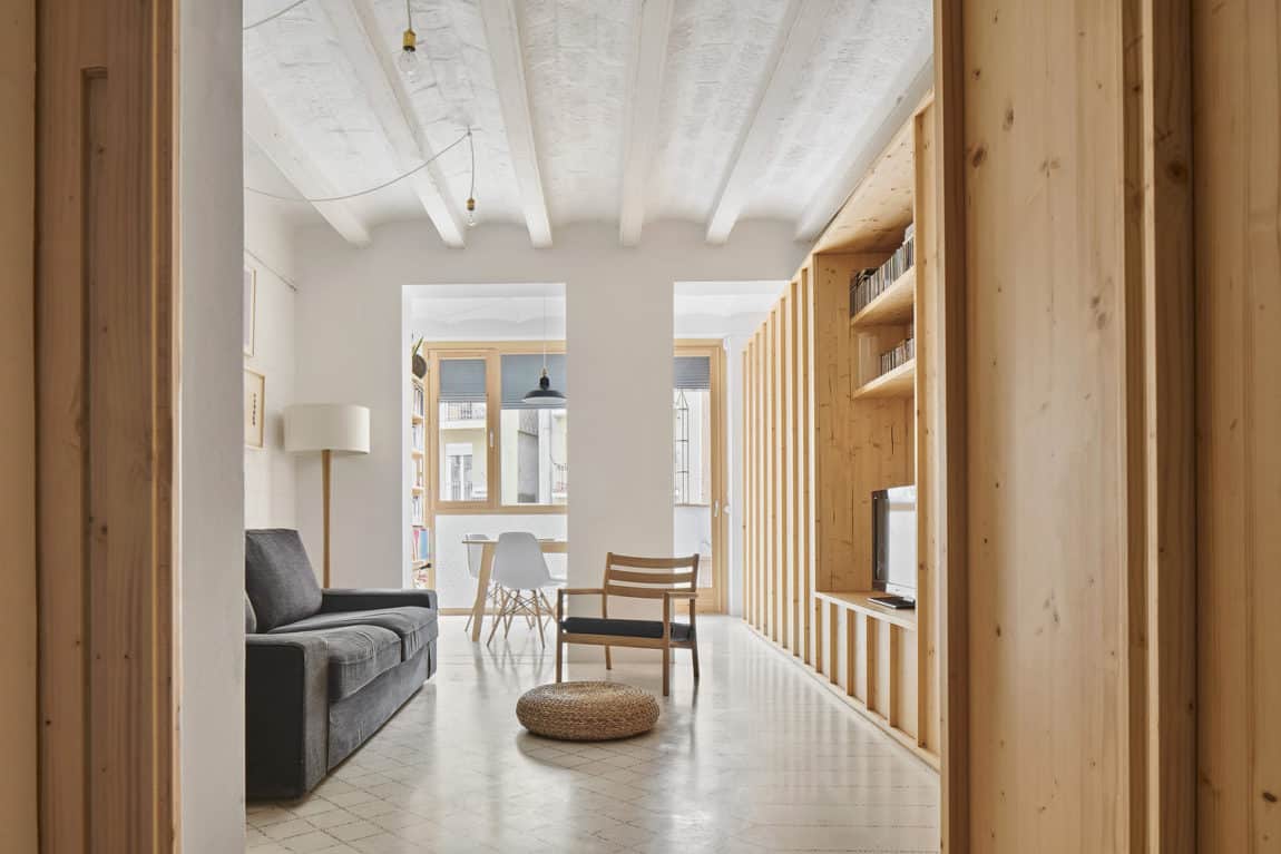 Un nuevo armario cruza toda la casa de un extremo a otro. Los responsables de este proyecto, los arquitectos Irene Pérez y Jaume Mayol, lograron crear espacios funcionales y acogedores en este piso de 65 M2.