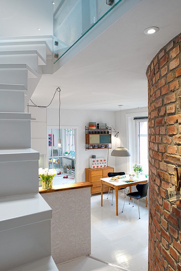 Se incorpora además el estilo con ladrillo a la vista, lo que le da un aspecto rustico que combina muy bien con los acabados típicos del estilo nórdico, es decir, los tonos blancos y madera de color natural.