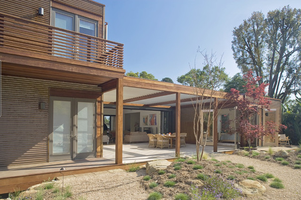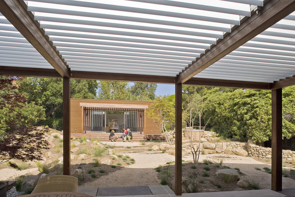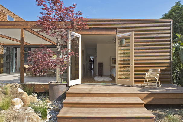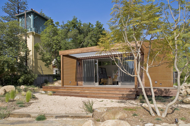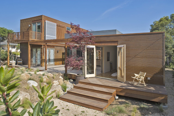 El Arquitecto y diseñador Michelle Kaufmann siempre ha estado interesado en diseñar y crear formas más inteligentes para vivir, además de un respeto por la tierra. Éste es uno de los líderes del movimiento de casas ecológicas prefabricadas en los Estados Unidos. Esta hermosa casa en Santa Bárbara California es un maravilloso ejemplo de las posibilidades de arquitectura prefabricadas. Fue construida para una pareja artística y ha ido creciendo hasta convertirse en un gran proyecto.
