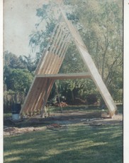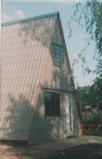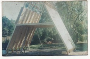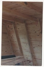 Se continua con la realización del correspondiente contrapiso de hormigón de cascote para toda la vivienda. Luego hace todo lo referente a la plante baja incluido el entrepiso (pino de 1″ cepillado), los cabios son de pinos de 4″ x 2″ cepillado con todo lo referente al cielorraso en machimbre de 1/2″ de pino.