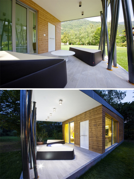 La construcción es de piedra sólida, que contiene un dormitorio y cuarto de baño, un espacio de almacenamiento para todo el equipaje de vacaciones. Además la suite principal es un refugio elegante que se adapta a todo lugar. También incluye una serie de postes de metal de gran tamaño y una zona protegida para sentarse y disfrutar de los alrededores. El concepto es modular en la naturaleza, perfecto para una escapada de fin de semana.