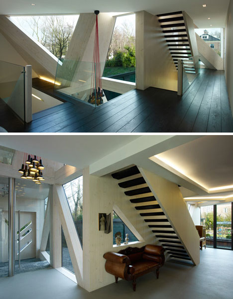 Una mezcla de sólidos en madera y acristalamiento y con una fachada de ladrillo tradicional hacen un perfecto hogar. Este lugar clásico Rotterdam representa años de orgánico crecimiento. Cuenta con nuevas escaleras en interiores que la hacen verse una residencia clásica y contemporánea. Las piezas prefabricadas y sus triángulos icónicos son gestos artísticos.