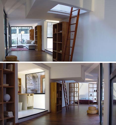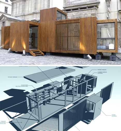La estructura prefabricada es de madera y se puede enviar a cualquier lugar. De hecho, tiene una fachada con diferentes estilos visuales y texturas físicas, y no parece un contenedor sino a cualquier casa de alta calidad. El interior cuenta líneas estáticas y continuas y los espacios blancos se suavizan a través de la madera puesta en pisos, gabinetes, escalera y estantes.