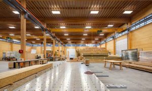 La fábrica fue construida con los mismos ideales que promovió, de la misma manera que hace otros diseños para edificios ecológicos prefabricados de madera. El diseño fue creado por Hemsworth Arquitectura, los expertos en diseño ayudaron a crear esta primera instalación en América del Norte. La firma estima que gracias al material que se utilizó para la construcción producirá 971 toneladas métricas menos de dióxido de carbono cada año, en comparación con una instalación construida con hormigón. La fábrica cuenta con un sistema de ventilación de recuperación de calor y las paredes son increíblemente aisladas, lo que ayuda a reducir las emisiones de carbono, esto en conjunto produce una fábrica tan eficiente como cualquiera de las casas que produce.