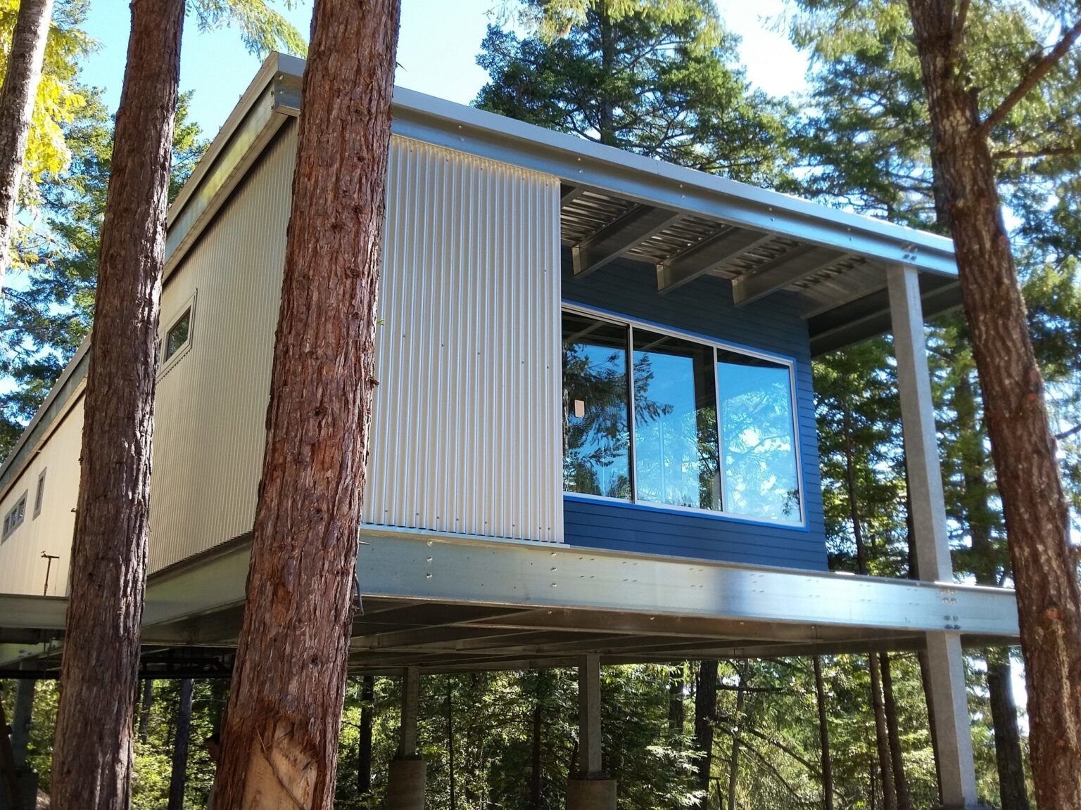 La estructura de metal elevada del piso deja una huella liviana en el terreno, con lo cual se logra una construcción ecológica, causando menos intrusión en el ecosistema y requiriendo poca (o ninguna) modificación en el área.