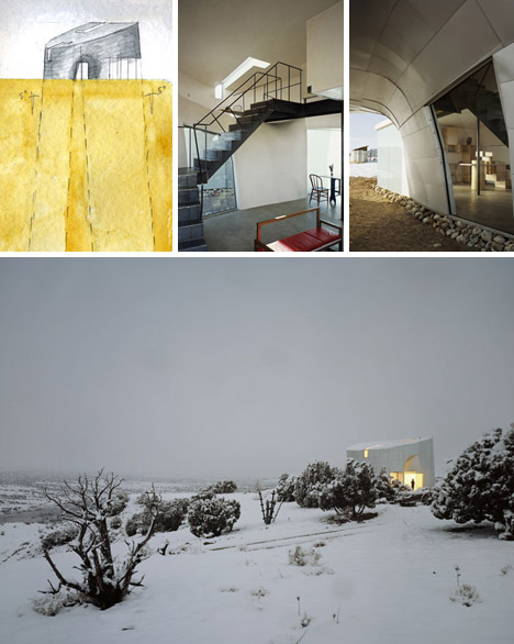 Parecido a un monolito metálico enterrado en la parte superior de una mesa, es un edificio solido como una piedra en el desierto capaz de soportar los vientos huracanados mas fuertes que pueden surgir en este lugar, cuenta con un bastión que contraataca los elementos ásperos de su ambiente erial plana. El diseño fue pensado en la punta de un iceberg pero con un cimiento mucho más grande y fuerte. Su diseñador es el arquitecto Steven Holl, el diseño es creado fuera del sitio utilizando las tecnologías más innovadoras de modelado y con prefabricación digital en 3D.