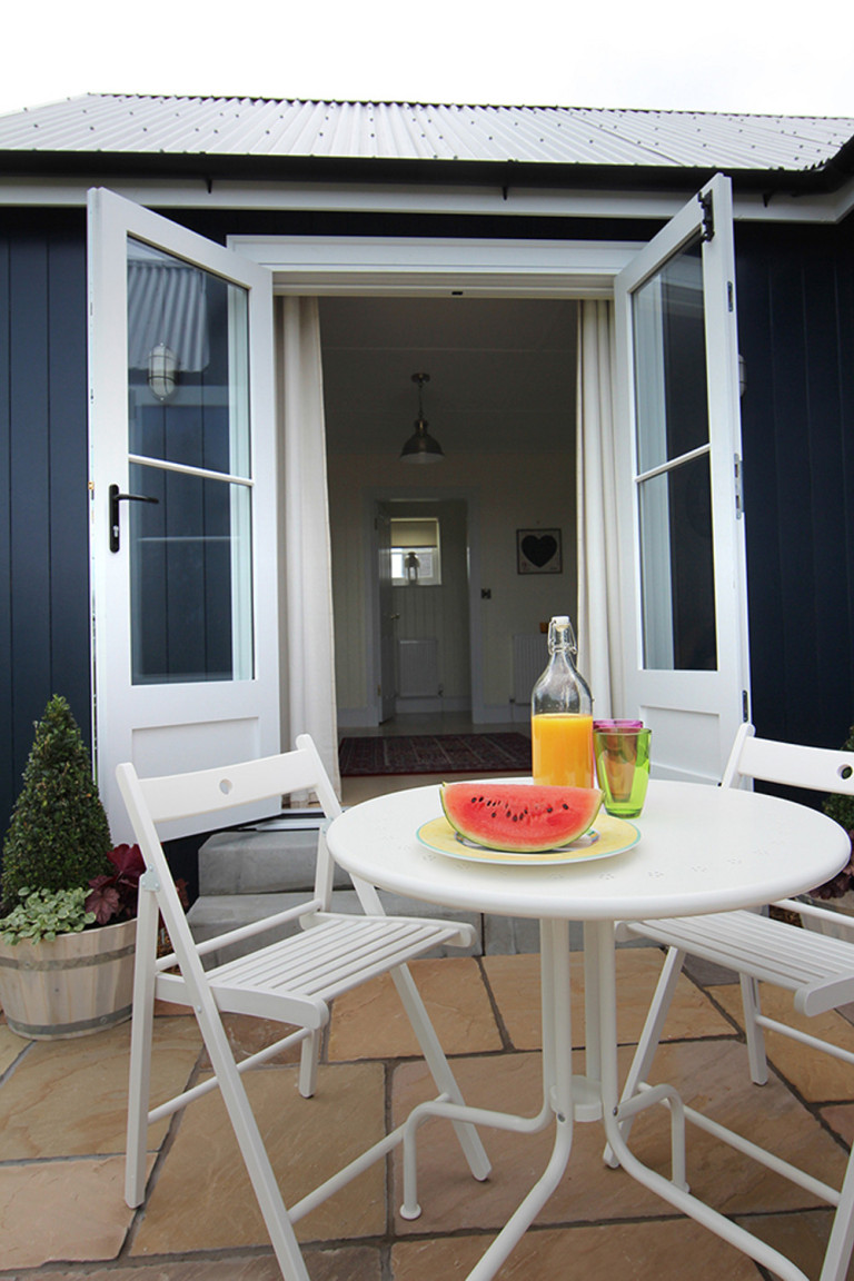 La casa tiene una medida de 40m2 en forma de “L”, la cual cuenta con un pequeño vestíbulo en la entrada, una sala de estar, la cocina, cuarto de baño y el dormitorio al cual podemos acceder a través de un pequeño pasillo. El dormitorio y la sala de estar son lugares muy luminosos con ventanas y puertas de estilo francés, gracias a estas se permite una excelente ventilación en tiempos calurosos. Las paredes interiores y el suelo tienen un acabado de madera de color. La instalación vertical de paneles de lengüeta y ranura en las paredes son un estilo asociado con el diseño escandinavo, que al parecer es muy común en escocia.