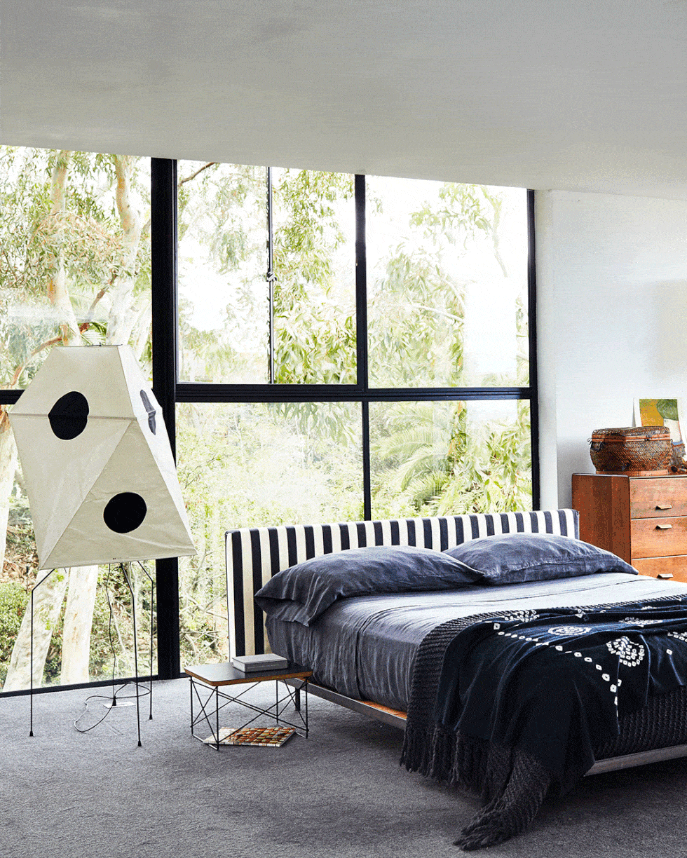 12 Acepta las Texturas Orgánicas. Desde el cabecero personalizado de color rosa que parece un tapiz hasta el colgante de ratán que ancla el dormitorio y la ventana con listones que se abre como un caballete, encantadoras texturas orgánicas llenan este espacio de inspiración japonesa de Kureck Jones. Para duplicar en tu propia habitación, agrega flores y una colcha de lino.