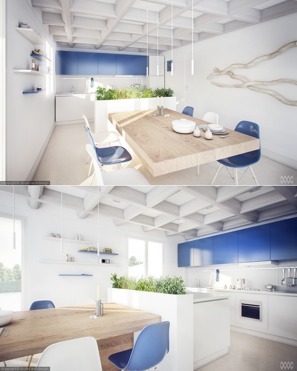 Este comedor azul y blanco desprendería la sensación de un apacible refugio playero sin importar dónde se encontrara.