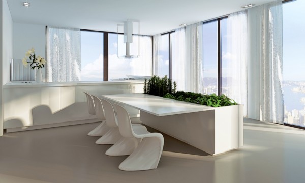 Esta increíble mesa de comedor convertible se repliega para revelar un pequeño jardín interior, perfecto para cultivar hierbas frescas. Por sí sola, la mesa es una pieza muy sencilla.