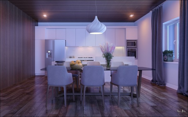La iluminación creativa hace que este comedor camine por la línea entre una noche sofisticada en un giro salvaje en un club nocturno.