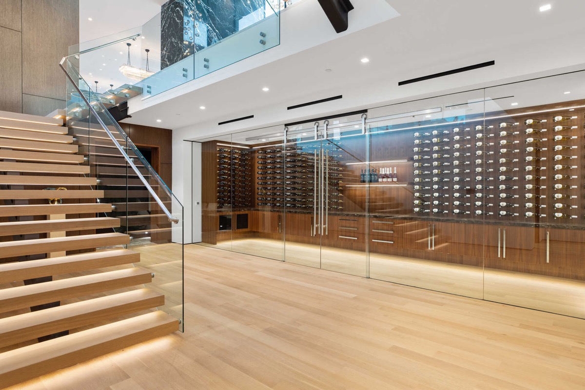 Las paredes de cristal mantienen la bodega abierta al resto de la casa, creando un elemento de diseño único y un tema de conversación inevitable.