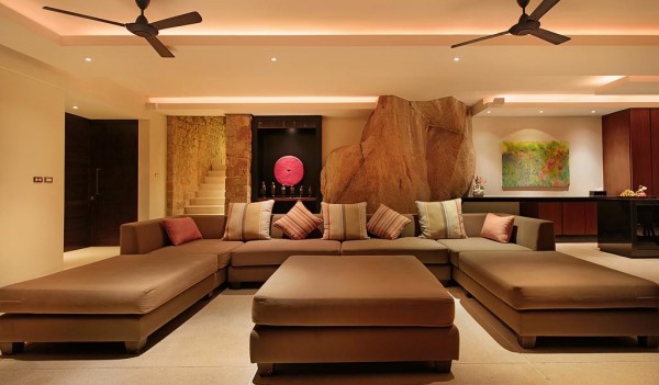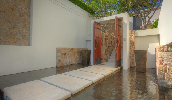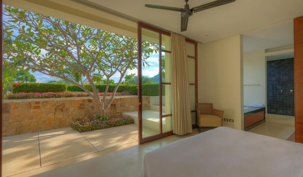 Un cuidado diseño paisajístico garantiza que la belleza exterior continúe desde la costa rocosa y el cocotero adyacente hasta cada puerta de la casa.