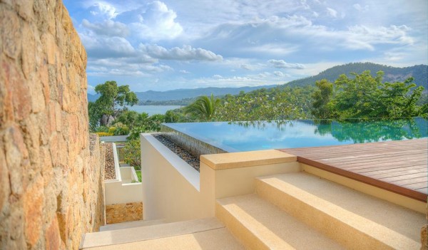 Una enorme piscina infinita, una de las más grandes de la isla de Koh Samui, ofrece un amplio espacio para refrescarse.
