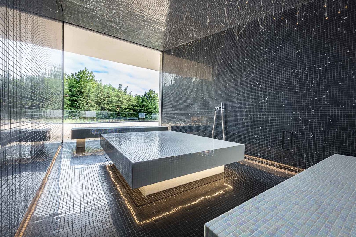 Las baldosas de granito negro revisten el espacio de bienestar.