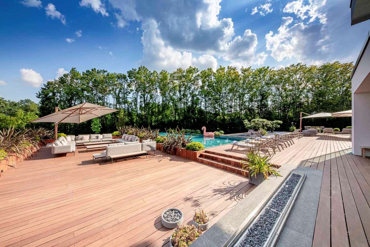 También hay un enorme garaje para 10 coches y una villa independiente en la propiedad donde los huéspedes pueden disfrutar de una estancia prolongada. La lujosa villa goza de unas vistas panorámicas del cuidado césped y la frondosa arboleda. Enormes terrazas dan cabida a cómodas zonas de estar al aire libre alrededor no de una, sino de dos piscinas exteriores.