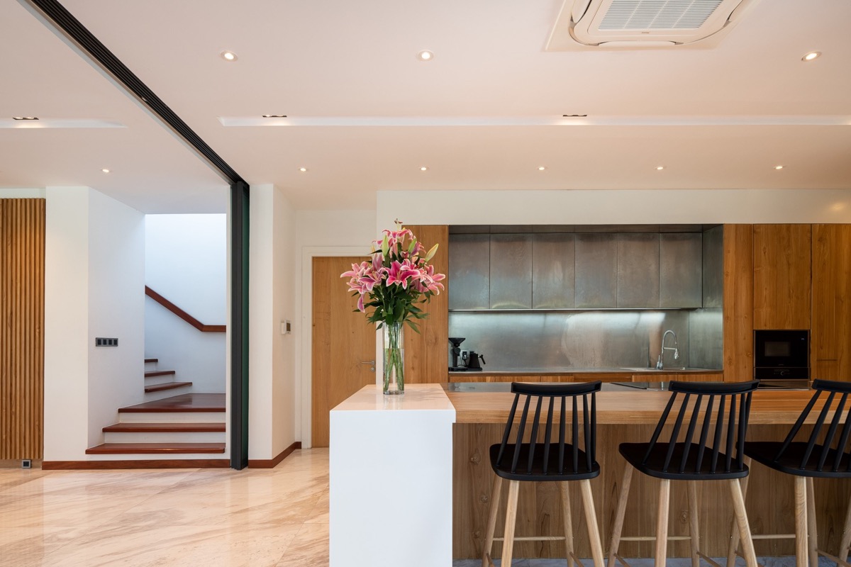 Un ambiente animado es importante en la zona central de la casa, por lo que se diseñaron elementos arquitectónicos que ayudaran a promover el movimiento dinámico entre los espacios circundantes.
