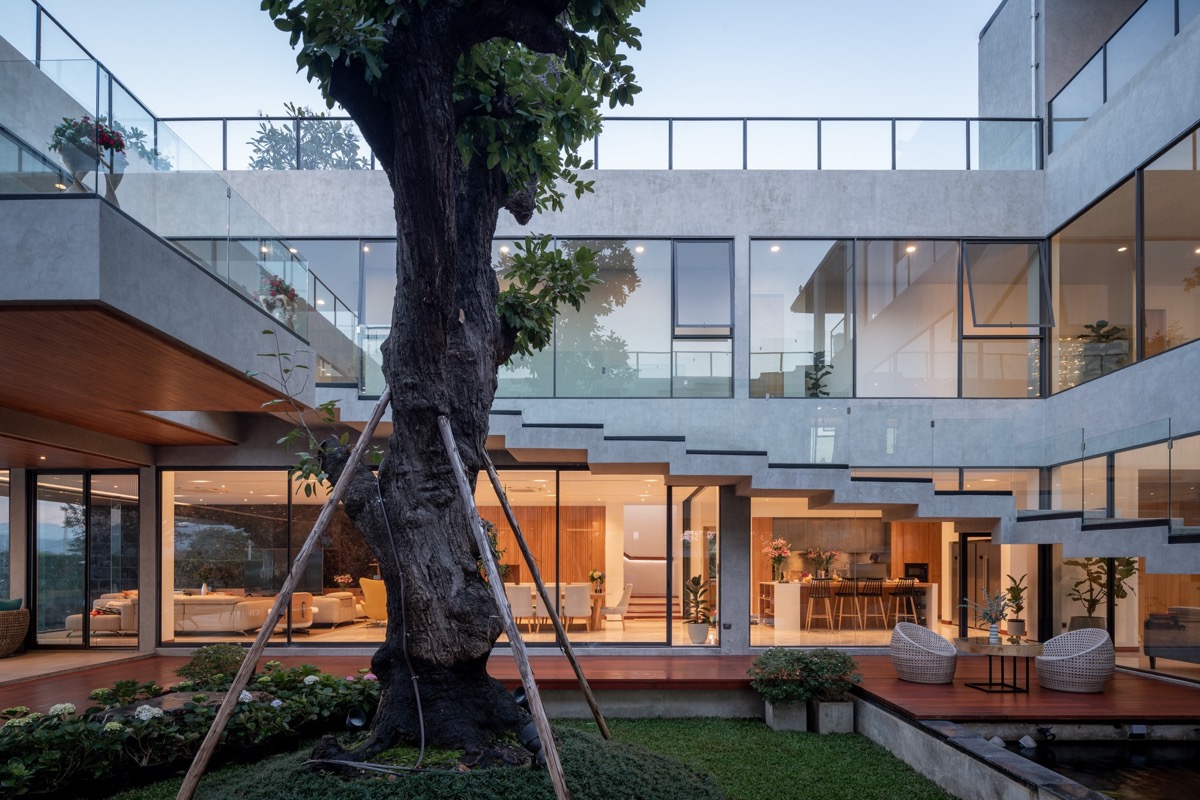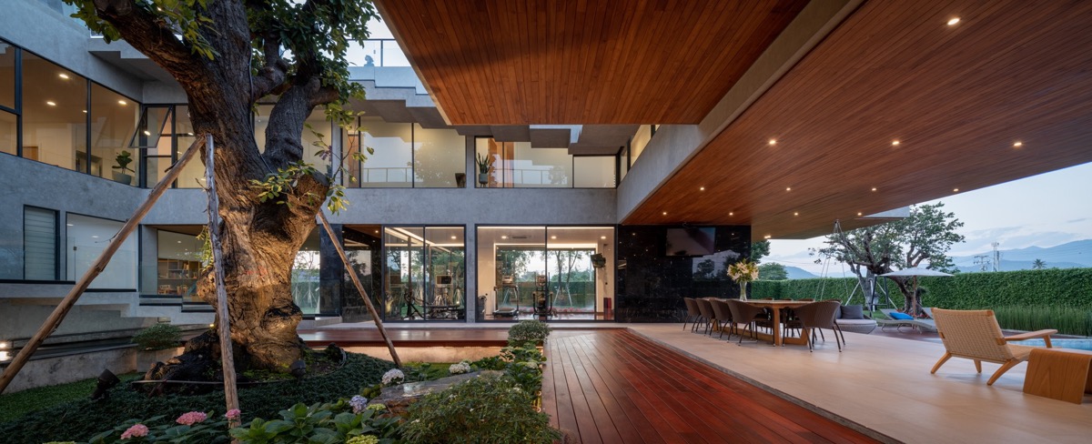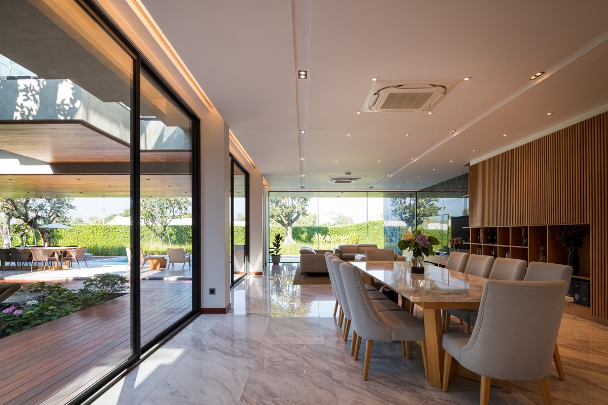 En la cultura tradicional tailandesa se cree que el Meranti Blanco simboliza el compromiso, una cualidad que prevalece en la humildad de los tailandeses. El compromiso es también la cualidad que mantiene a una gran unidad familiar conviviendo en paz. Las grandes ventanas circundantes amplían la vista del patio y crean oportunidades de conexión.