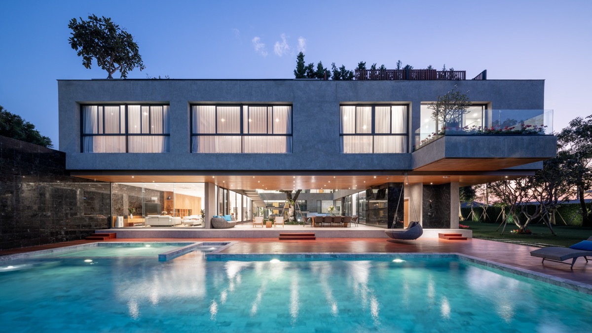 Este complejo familiar es una propiedad de 2.000 metros cuadrados en el distrito de Hangdong, Chiang Mai, Tailandia, creada por Full Scale Studio. En Jongluck Villa viven tres pequeñas familias: Los padres, la familia de su hijo y la familia de su hija.