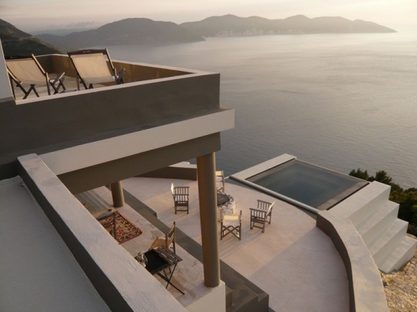 Las zonas al aire libre de la villa se han dejado intencionadamente desnudas, sin elementos decorativos, para poder disfrutar sin distracciones de la belleza del paisaje marino y las tierras salvajes que la rodean.