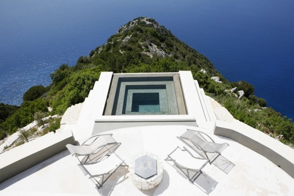 Considerada una de las villas más exclusivas y lujosas del Mediterráneo, Villa Begonia está rodeada por el mar mientras abundan los elementos acuáticos en su patio.