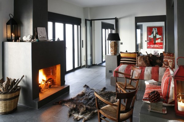 El salón cuenta con muebles tapizados de vivos colores, una acogedora chimenea y abundantes ventanas.