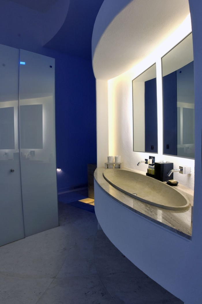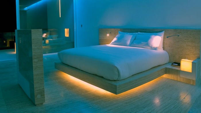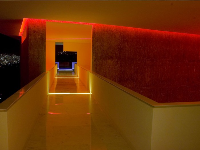 Las habitaciones también brillan con una luz ambiental de tonos vibrantes, como se ve aquí.
