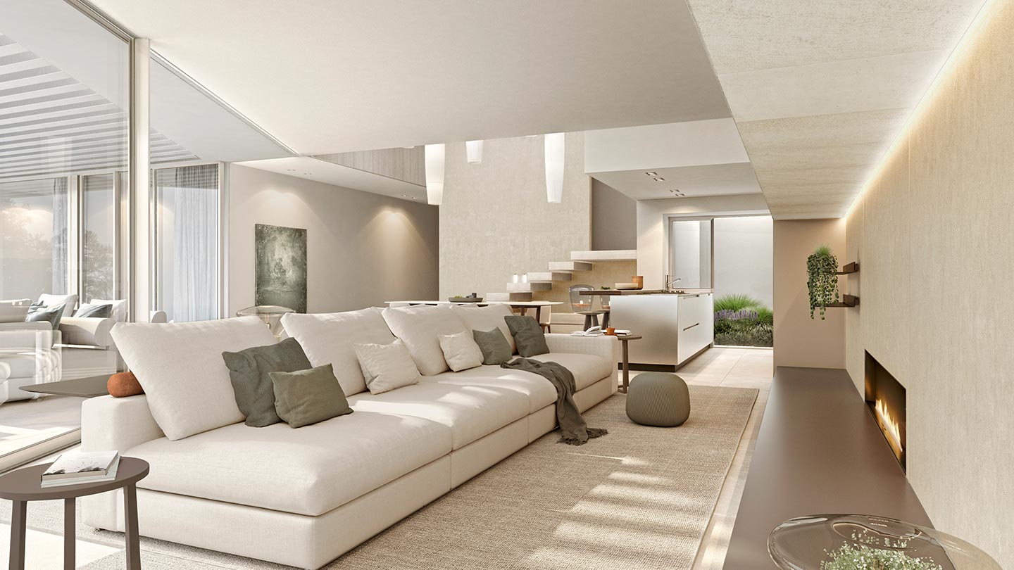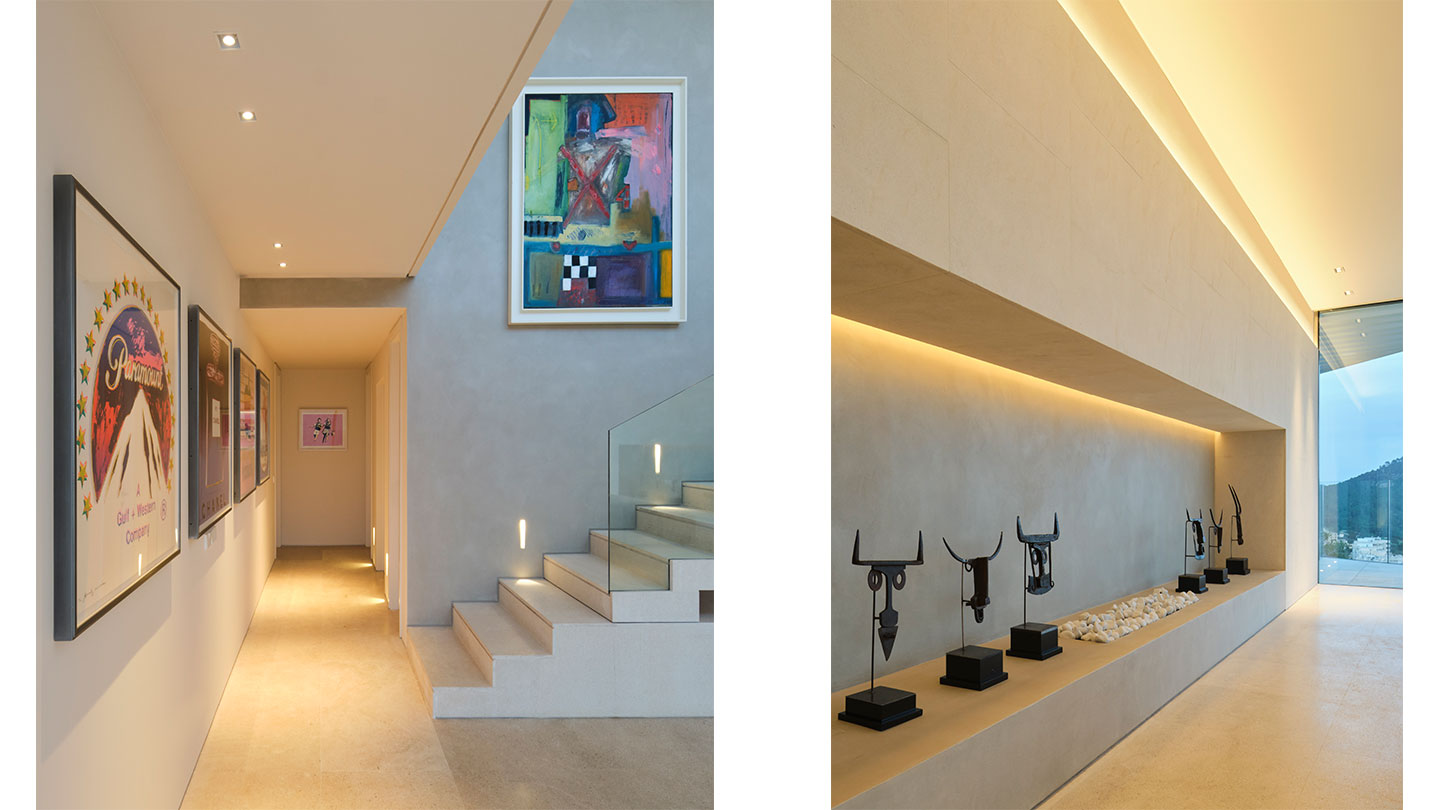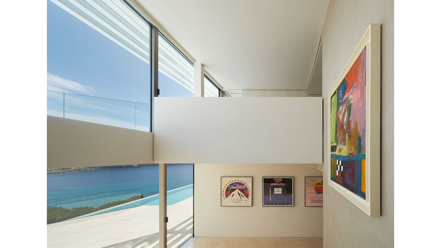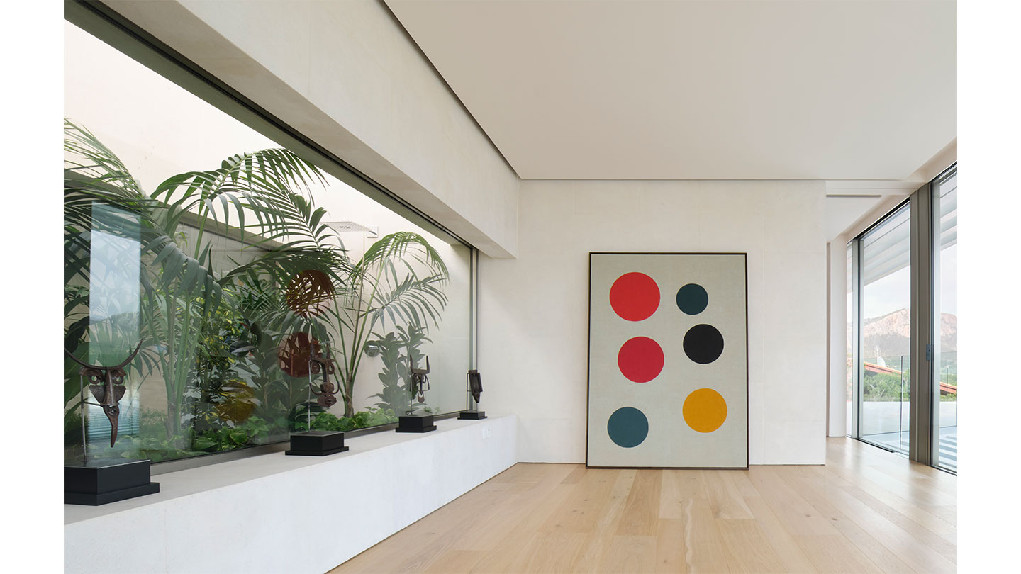 El lujo interior superior se materializa en un mobiliario moderno y elegante y un enfoque minimalista limpio. Paredes blancas, mucha luz y techos altos crean el espacio perfecto para una codiciada colección de obras contemporáneas de Damien Hirst, Andy Warhol y Banksy. Las obras de arte inyectan vivos estallidos de color en tres plantas de espacios fluidos que se abren al panorama.