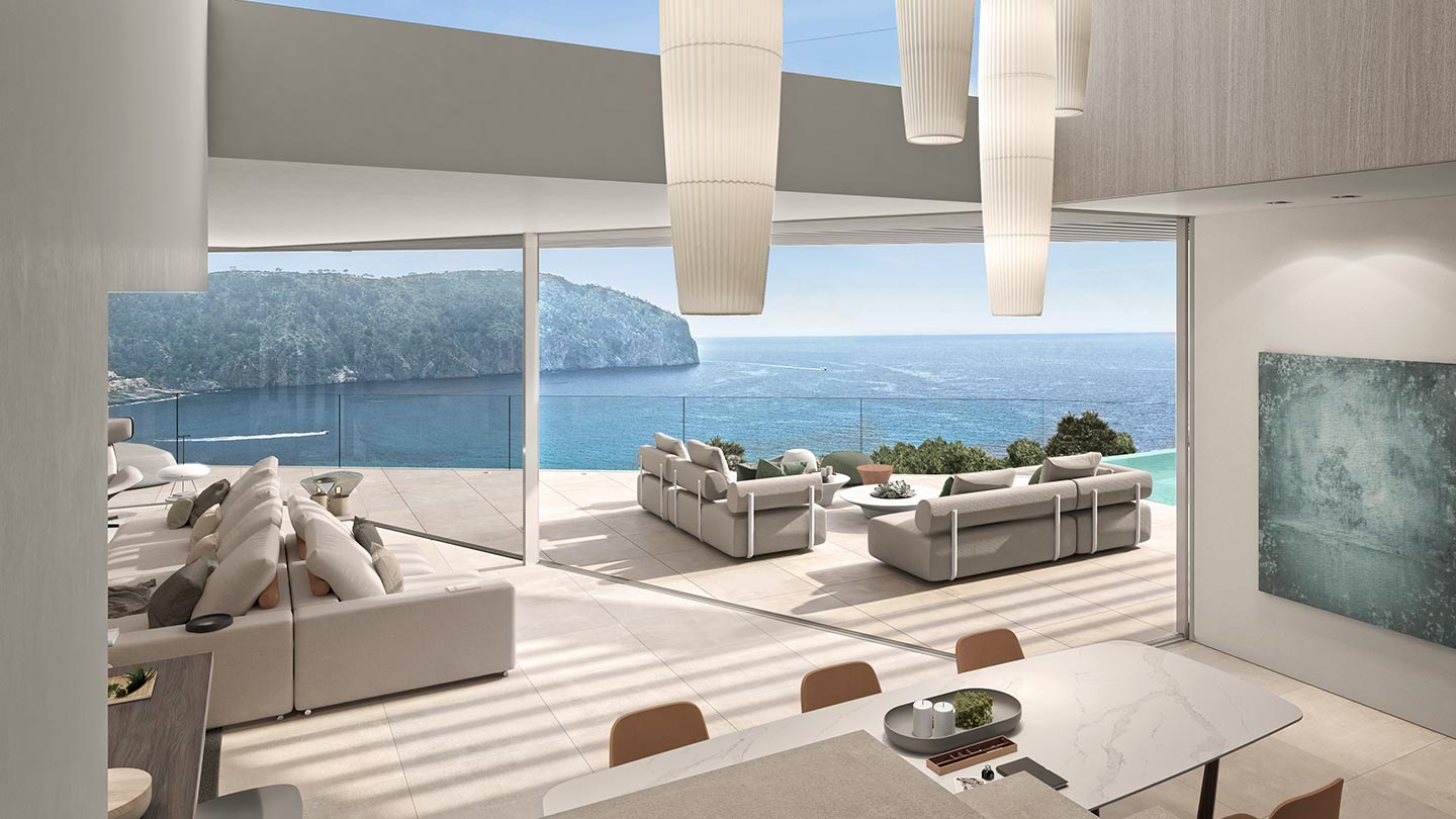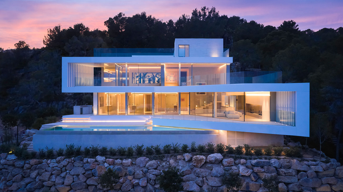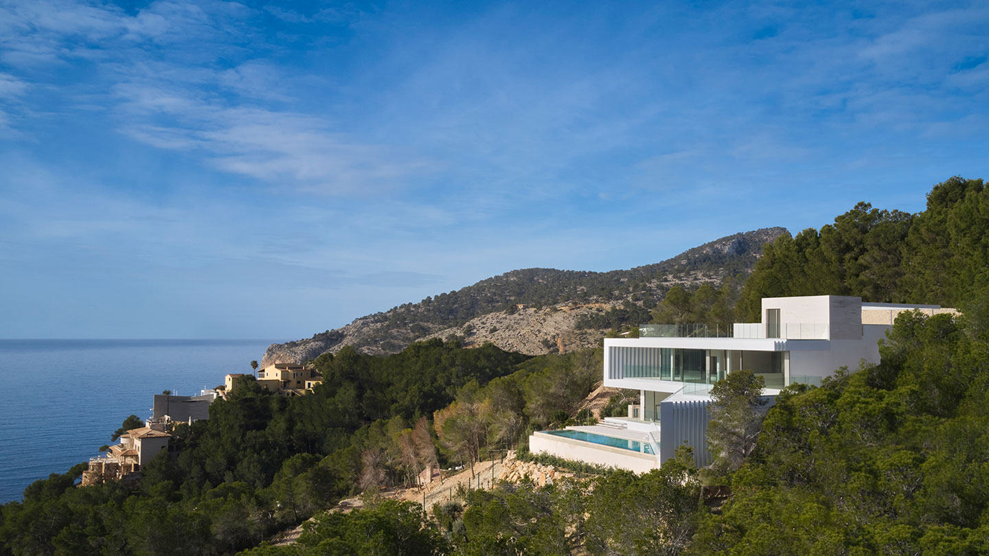 En una parcela de 1.000 metros cuadrados orientada al sur, Villa Anguli domina Camp de Mar, Mallorca, desde una privilegiada posición elevada. Creada por E5 Living, esta moderna residencia mediterránea de 399 metros cuadrados goza de espectaculares vistas al mar que han influido en su arquitectura geométrica y su elegante fachada de cristal.