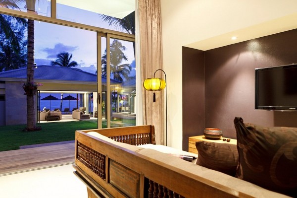 La decoración fusiona elementos tradicionales tailandeses con muebles de diseño de artistas contemporáneos, creando una atmósfera sofisticada y acogedora.