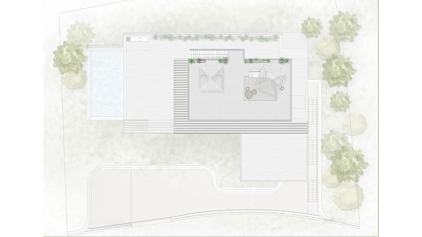 Planta superior con sala de estar principal, además de amplias terrazas con zonas de estar al aire libre y piscina infinita.