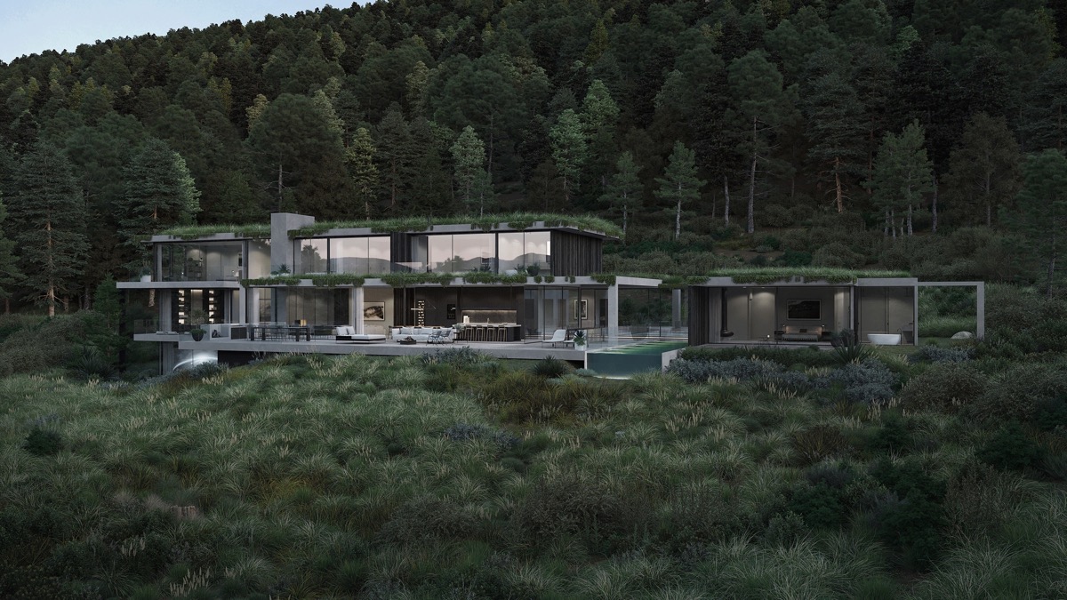 La casa, que estará terminada en 2023, cuenta con cuatro amplios dormitorios, un gran salón de planta abierta con comedor, cocina y sala de estar, y una enorme terraza que disfruta de la serenidad del paisaje circundante.