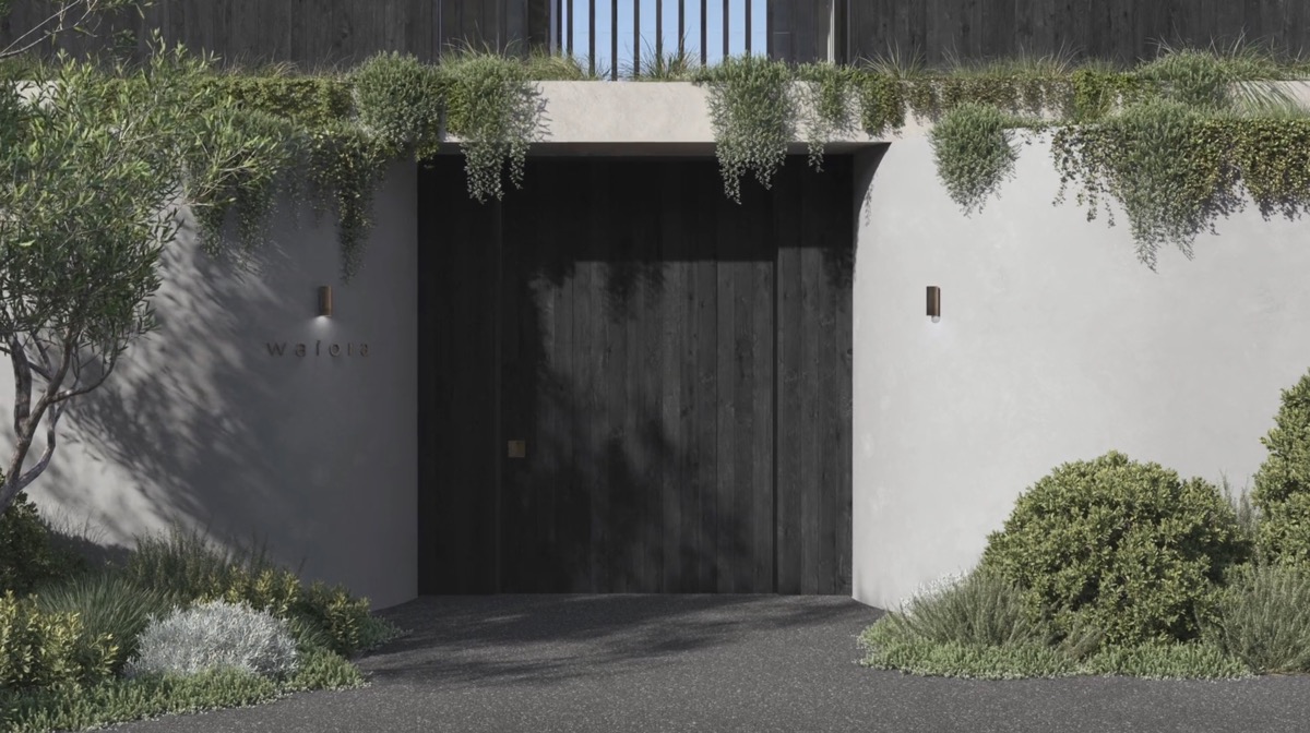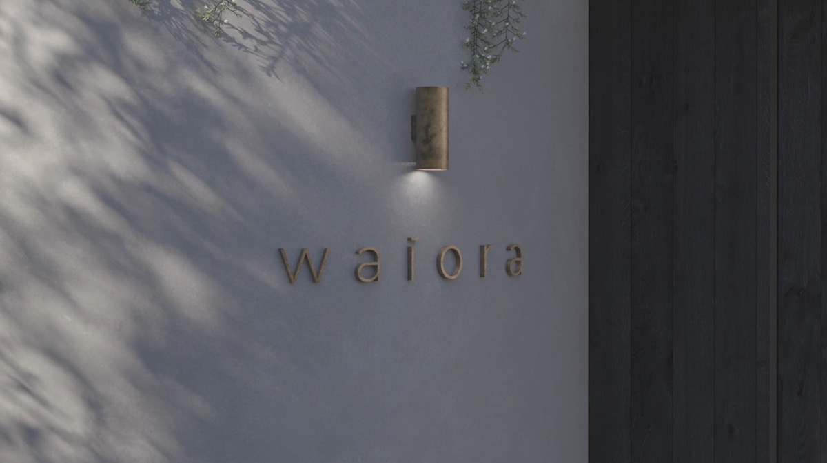Waiora es la palabra maorí que significa salud, bienestar y aguas curativas. Este bello nombre aparece en letras doradas en la puerta principal, iluminado por un moderno y discreto aplique de pared.
