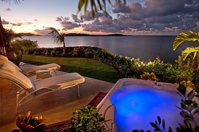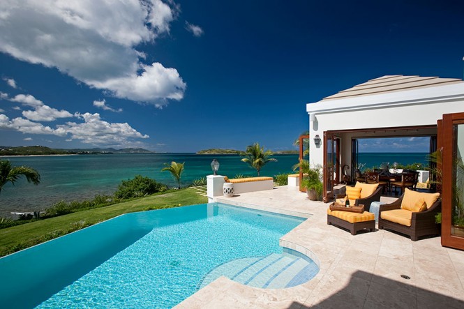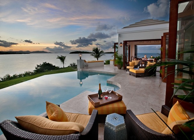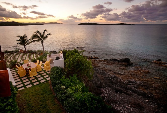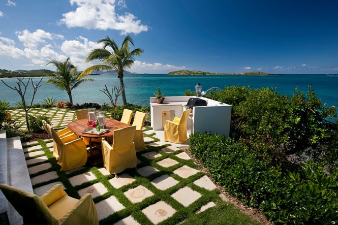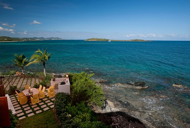 Otra zona de descanso al aire libre está situada en la planta superior de la propiedad de dos niveles para ofrecer una mayor apreciación de las vistas al mar desde las tumbonas acolchadas – el lugar perfecto para tomar un cóctel mientras los yates navegan en el horizonte.