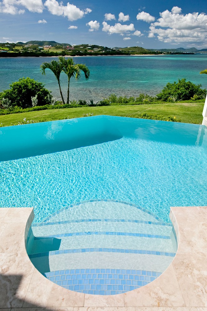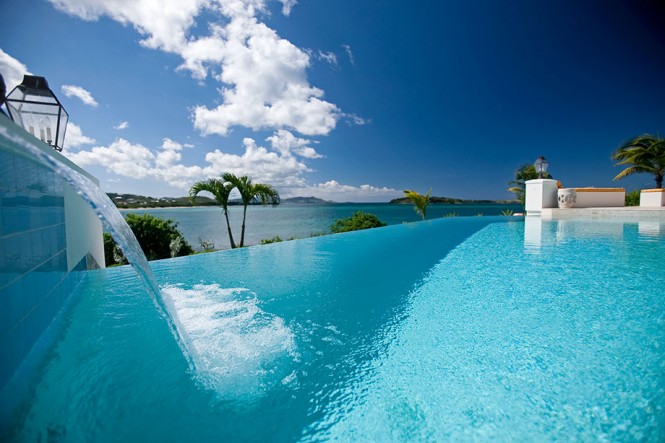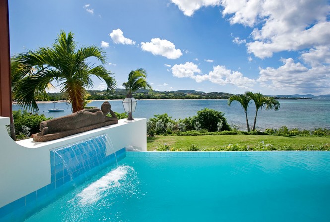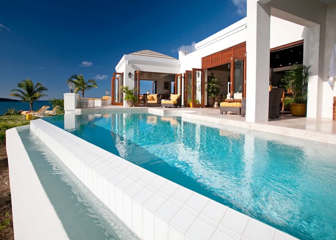 Croix. El gran salón da a una piscina con cascada y Buda reclinable, y a amplias terrazas para broncearse tranquilamente, socializar bajo el sol, relajarse en el jacuzzi o cenar al aire libre con la parrilla de gas exterior y la gran mesa de teca.