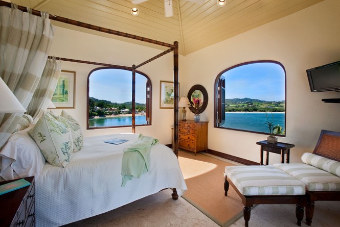 ‘Island Views’ es una acogedora villa caribeña con vista a un tranquilo paisaje oceánico, repleta de decoración fresca y sencilla, techos de madera de sapele africana e iluminación artística.