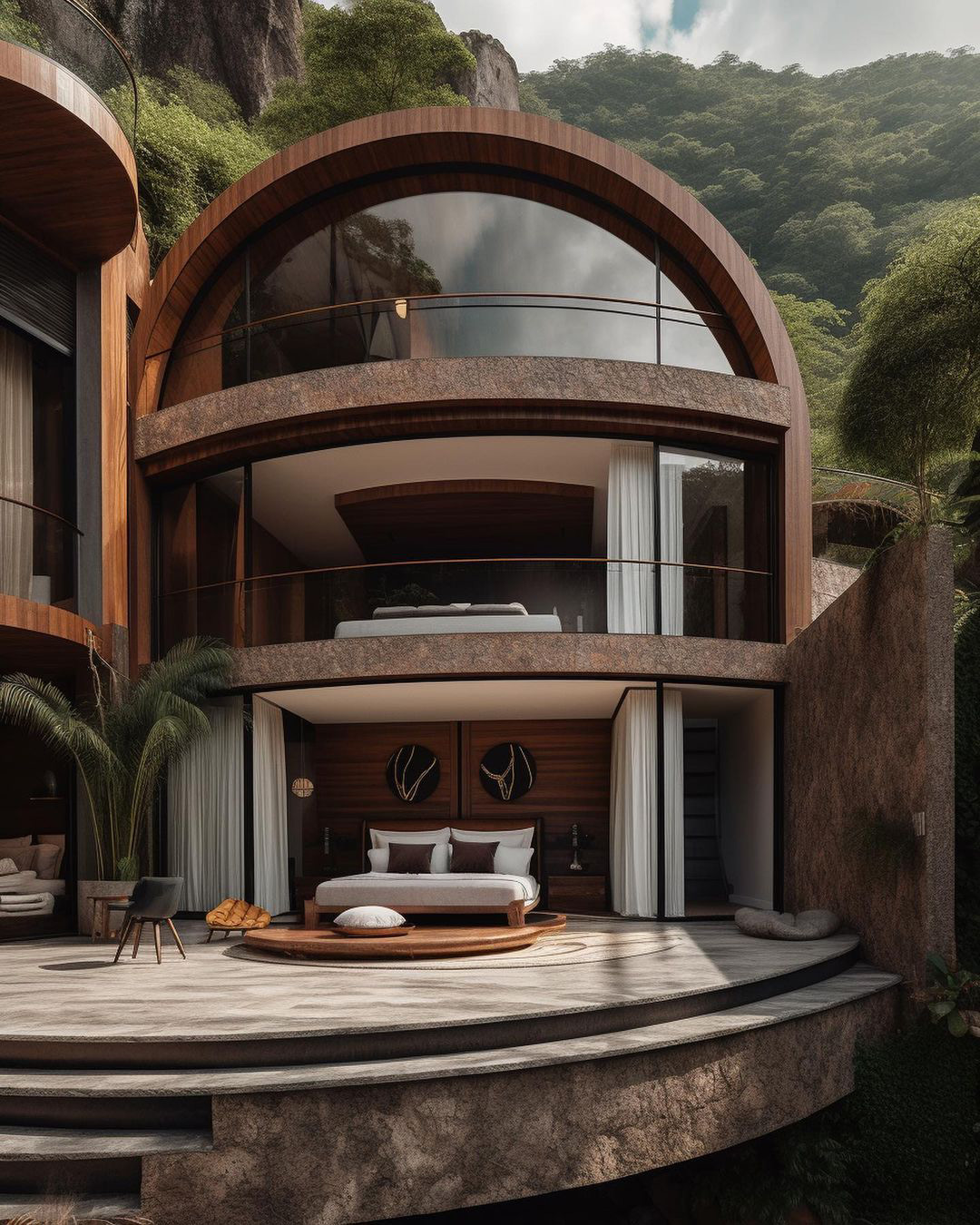 Combinando conocimientos técnicos y sensibilidad artística, los primeros arquitectos y diseñadores están superando los límites y desdibujando las fronteras entre lo físico y lo fantástico. En este artículo, nos adentramos en dos asombrosos diseños generados por IA y realizados por la visualizadora Maria Dudkina, que se funden armoniosamente con el mundo natural.