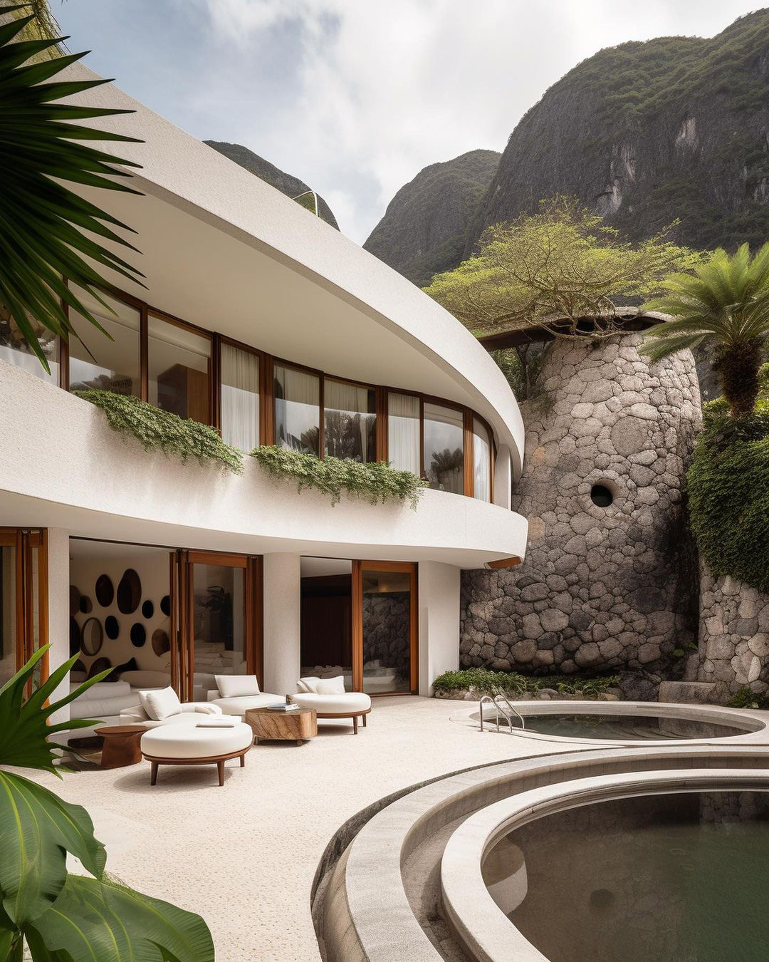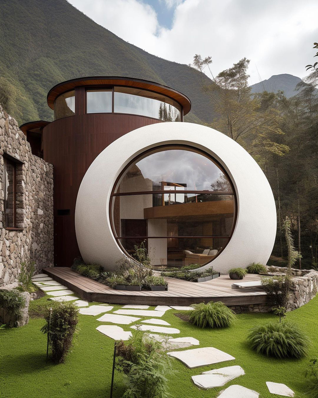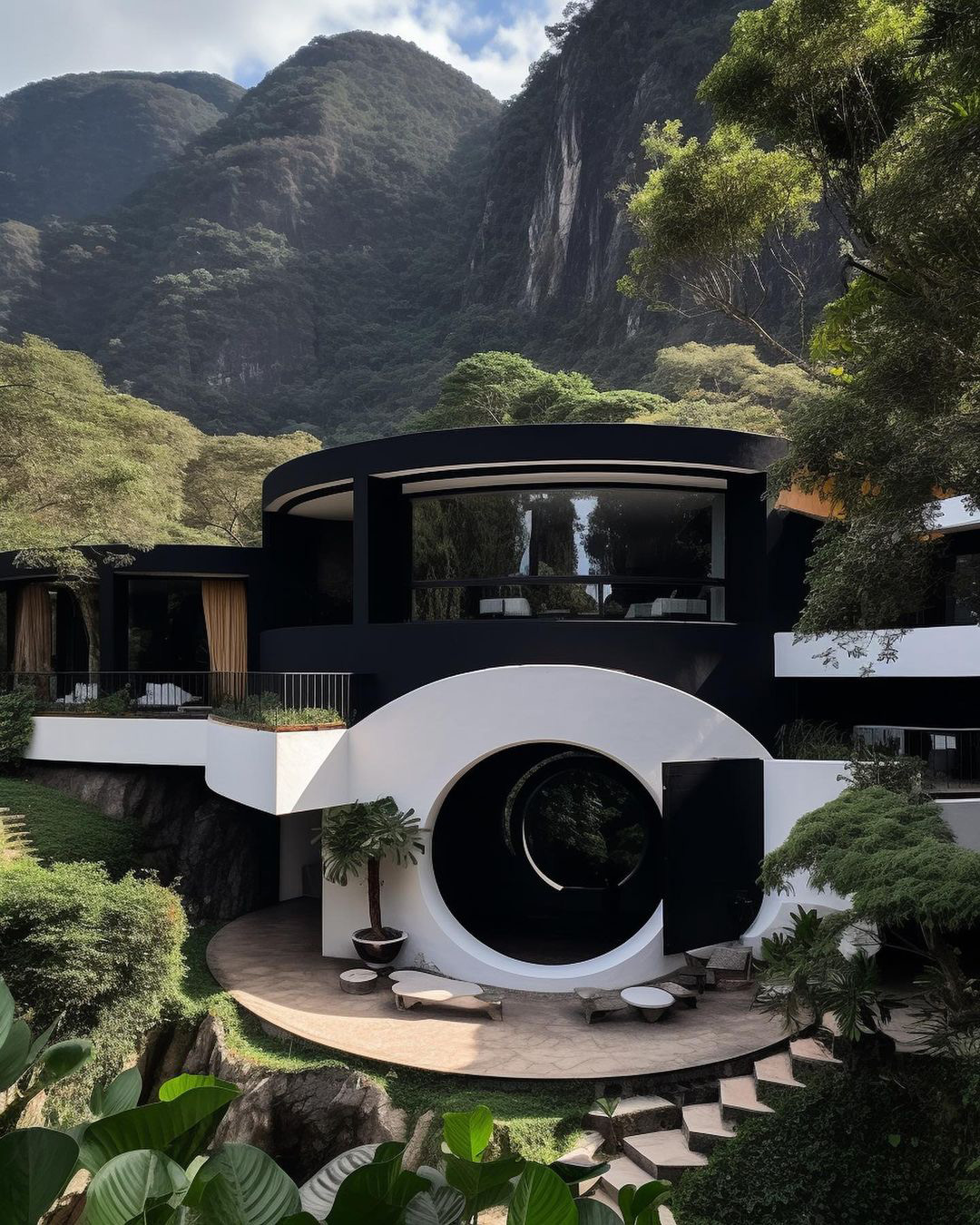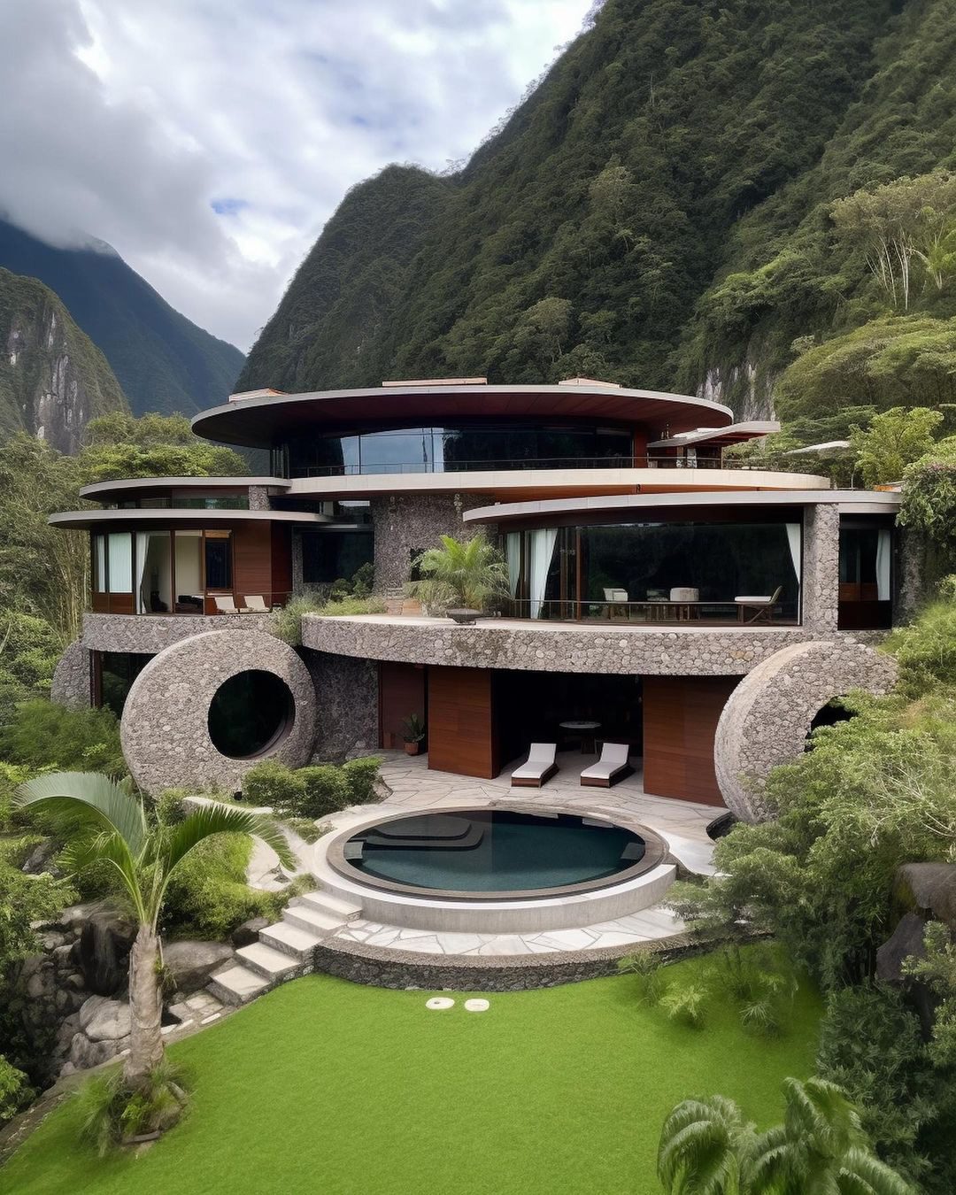 Una maravilla inspirada en un nido de pájaro se aferra a la escarpada ladera de una montaña, ampliando los límites de la imaginación, y una futurista y curvilínea morada nace en un exuberante valle tropical.