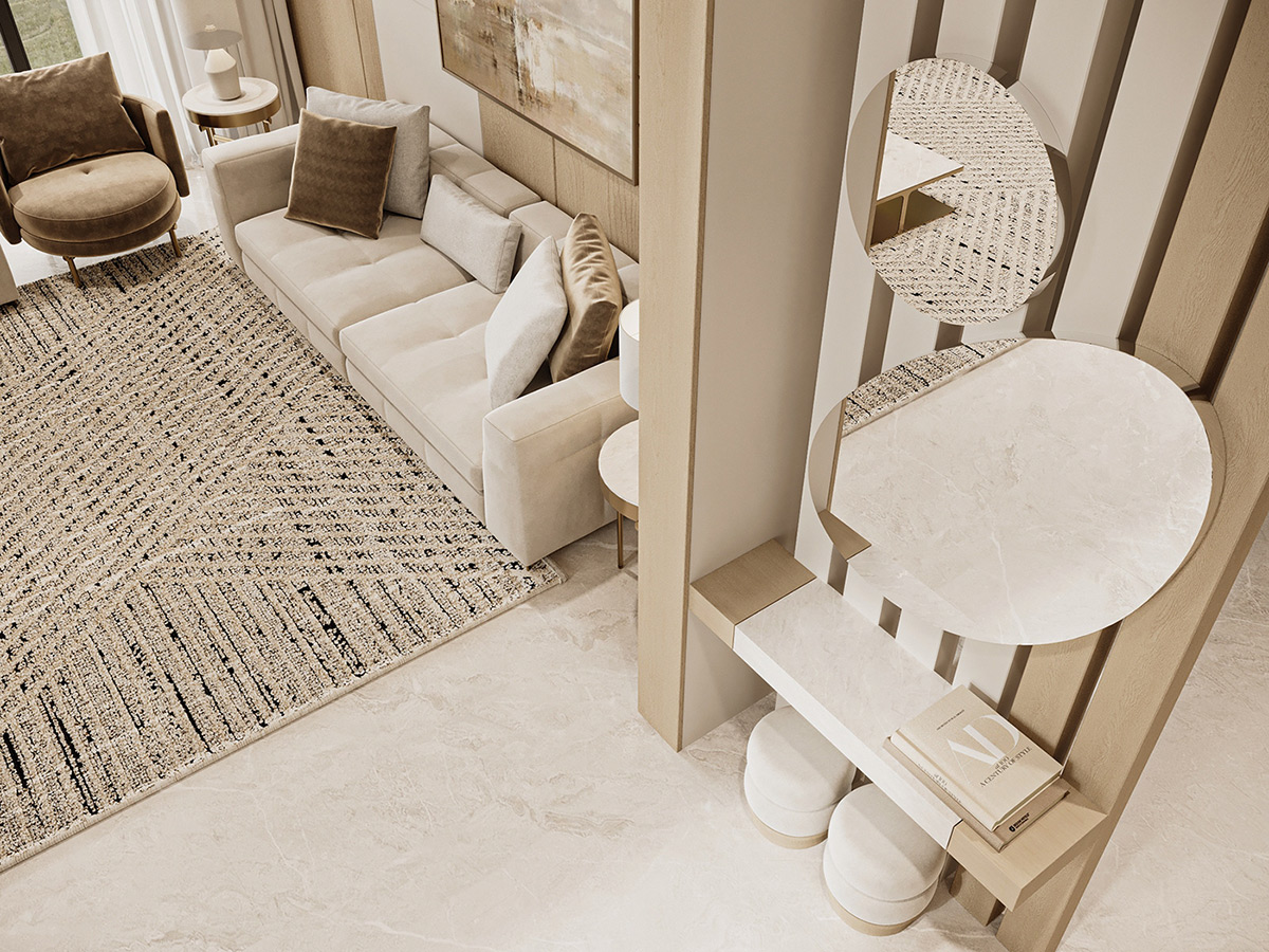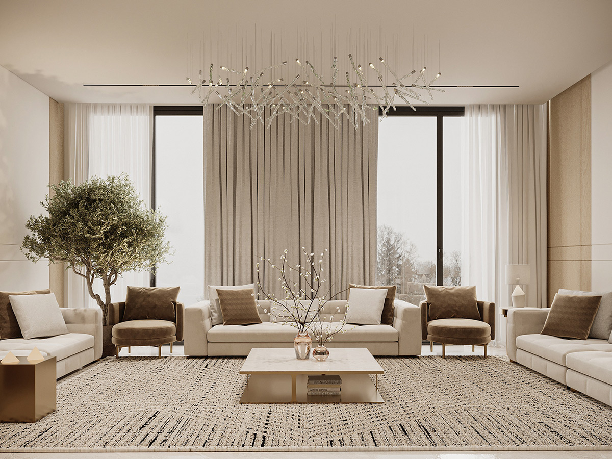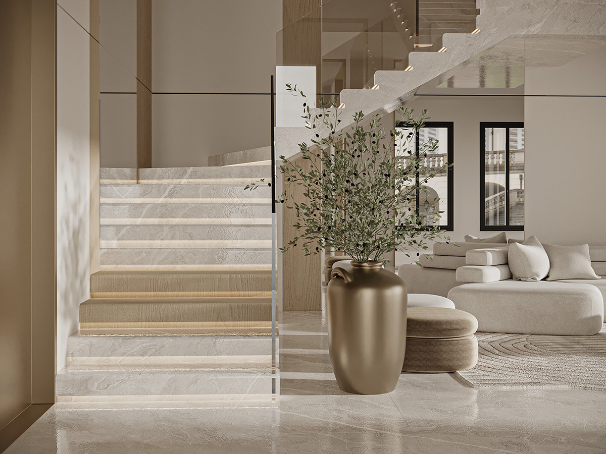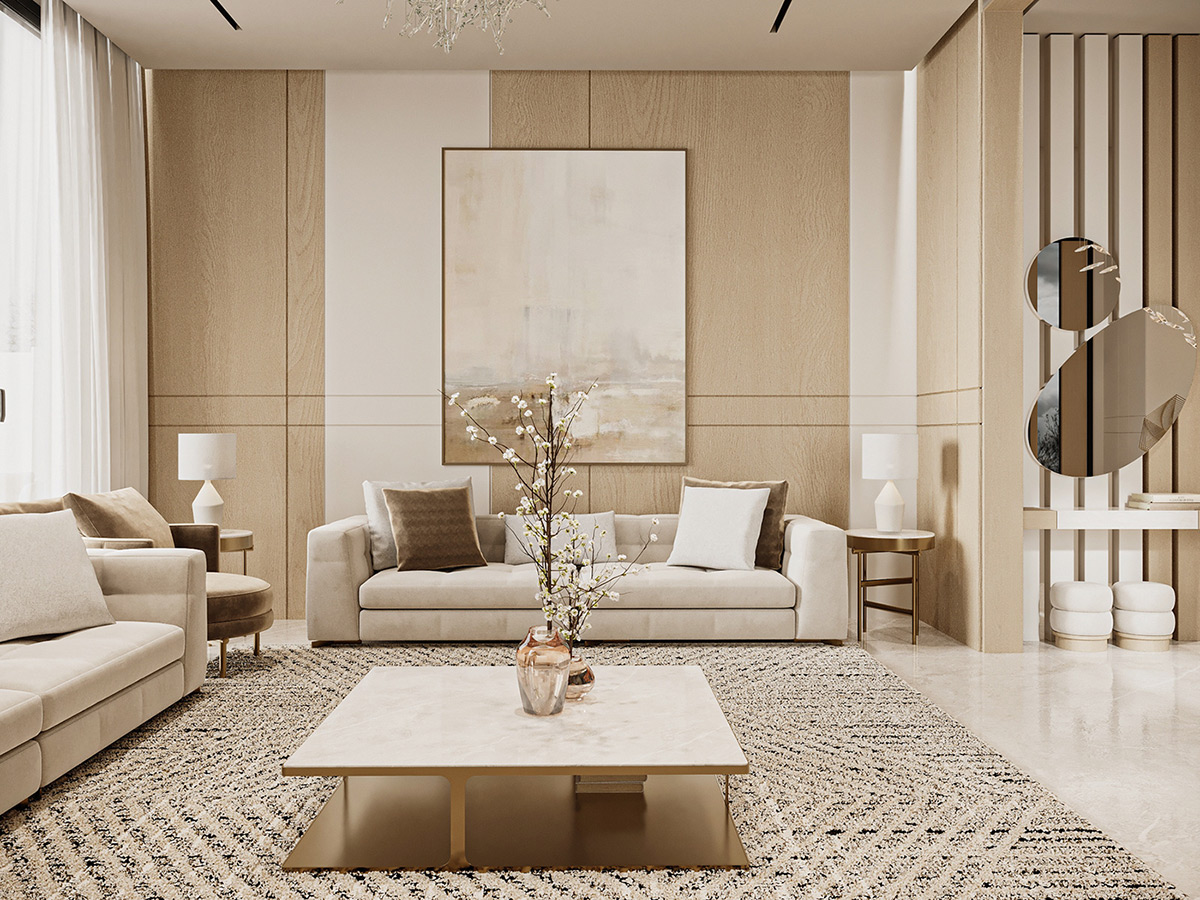 Esta impresionante villa en Arabia Saudí es la personificación del lujo tranquilo. Diseñados por Line X, los interiores presentan una serena paleta de tonos neutros que se combinan armoniosamente con elementos naturales como olivos y texturas orgánicas.