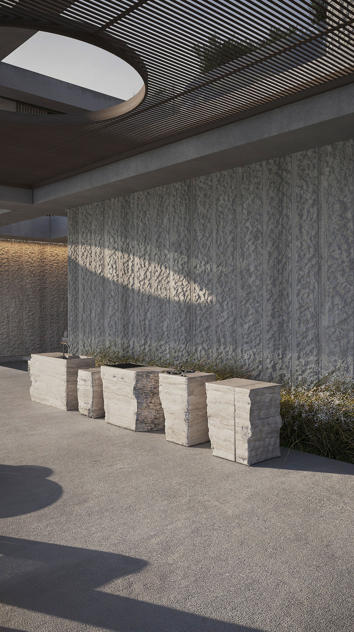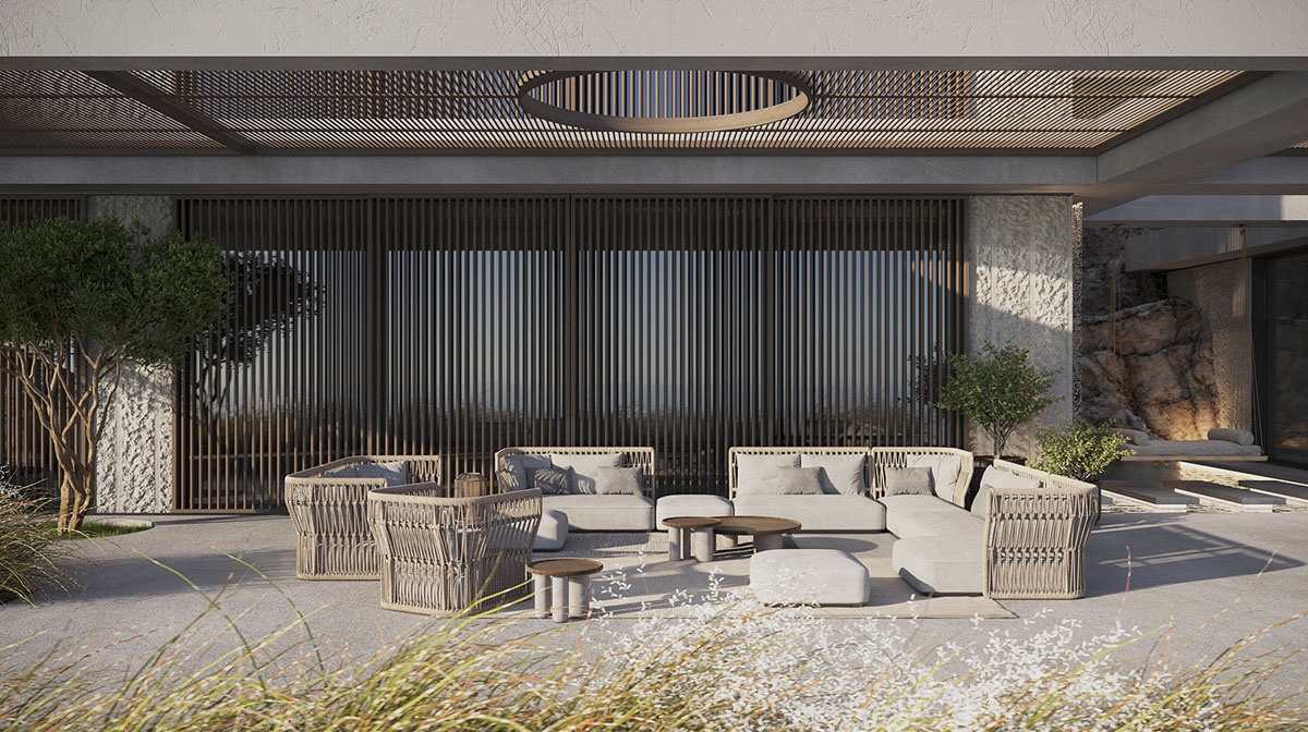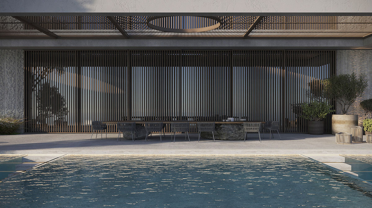 Visualizado por NK Interior, este diseño ofrece una perfecta integración de belleza y funcionalidad, dando como resultado un santuario exterior realmente cautivador. Alrededor de las amplias terrazas y las piscinas escalonadas se crean vistas únicas.